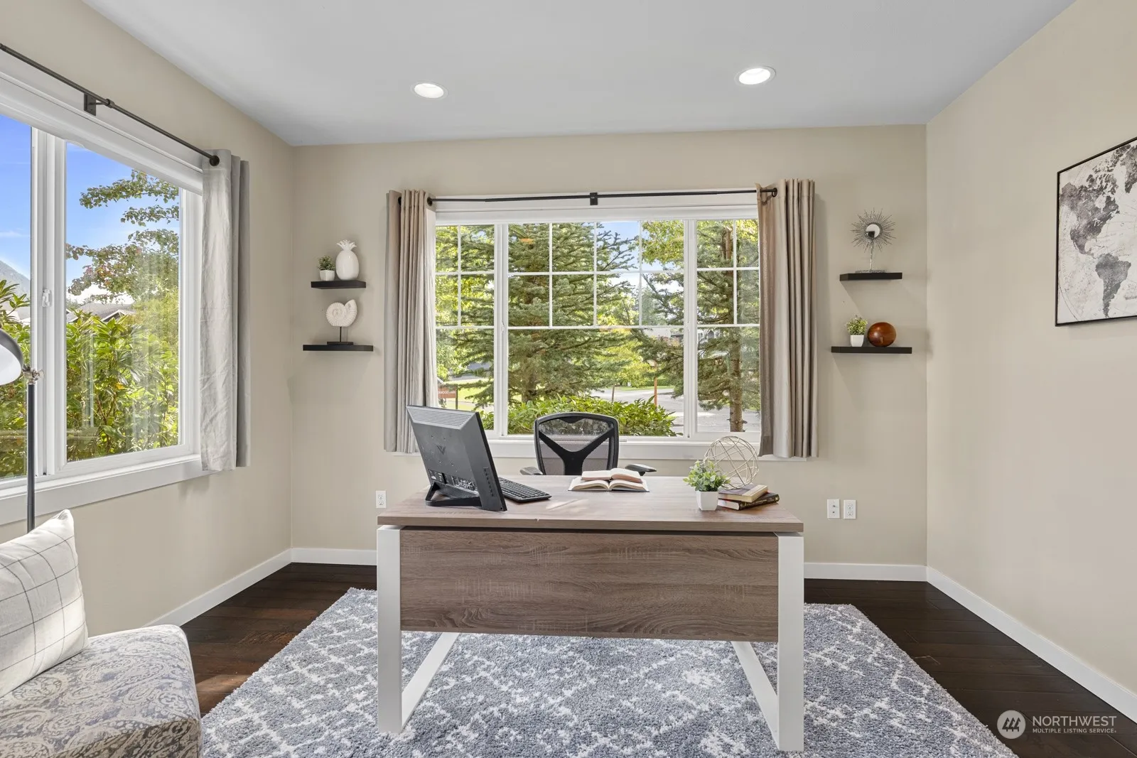 Beautiful urban retreat in sought-after Tannerwood. Bright, open floor plan with tons of natural light. Interior features craftsman millwork, gleaming hardwoods, chef’s kitchen, serene views, and designer accents throughout. Living and family rooms on main floor plus a dedicated den/office. Upstairs features four bedrooms plus oversized bonus room. Beautiful yard with lush landscaping, lots of grassy play area, entertainment size patio, and covered hot tub. Gas F/A heat plus A/C. Tandem 3 car garage. Steps to neighborhood park. Easy access to shopping and dining. Acclaimed Snoqualmie Valley Schools. Hurry!!!