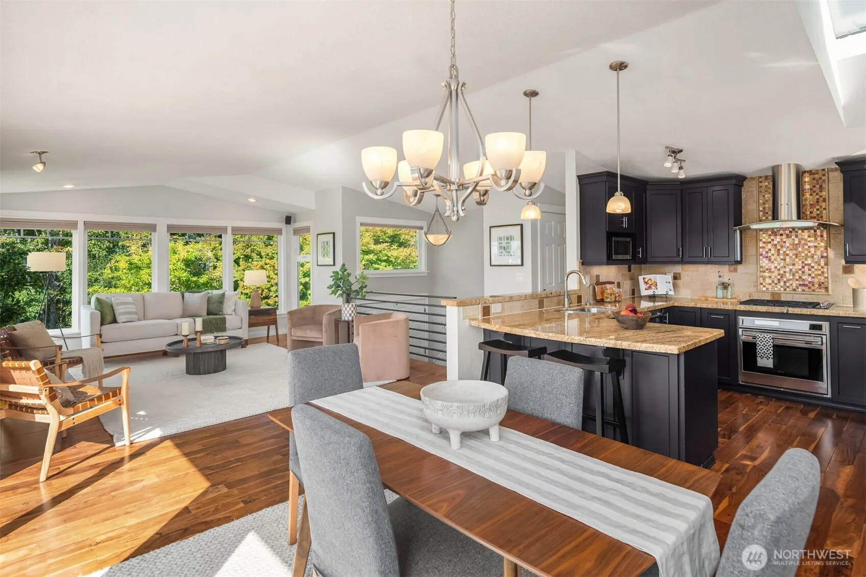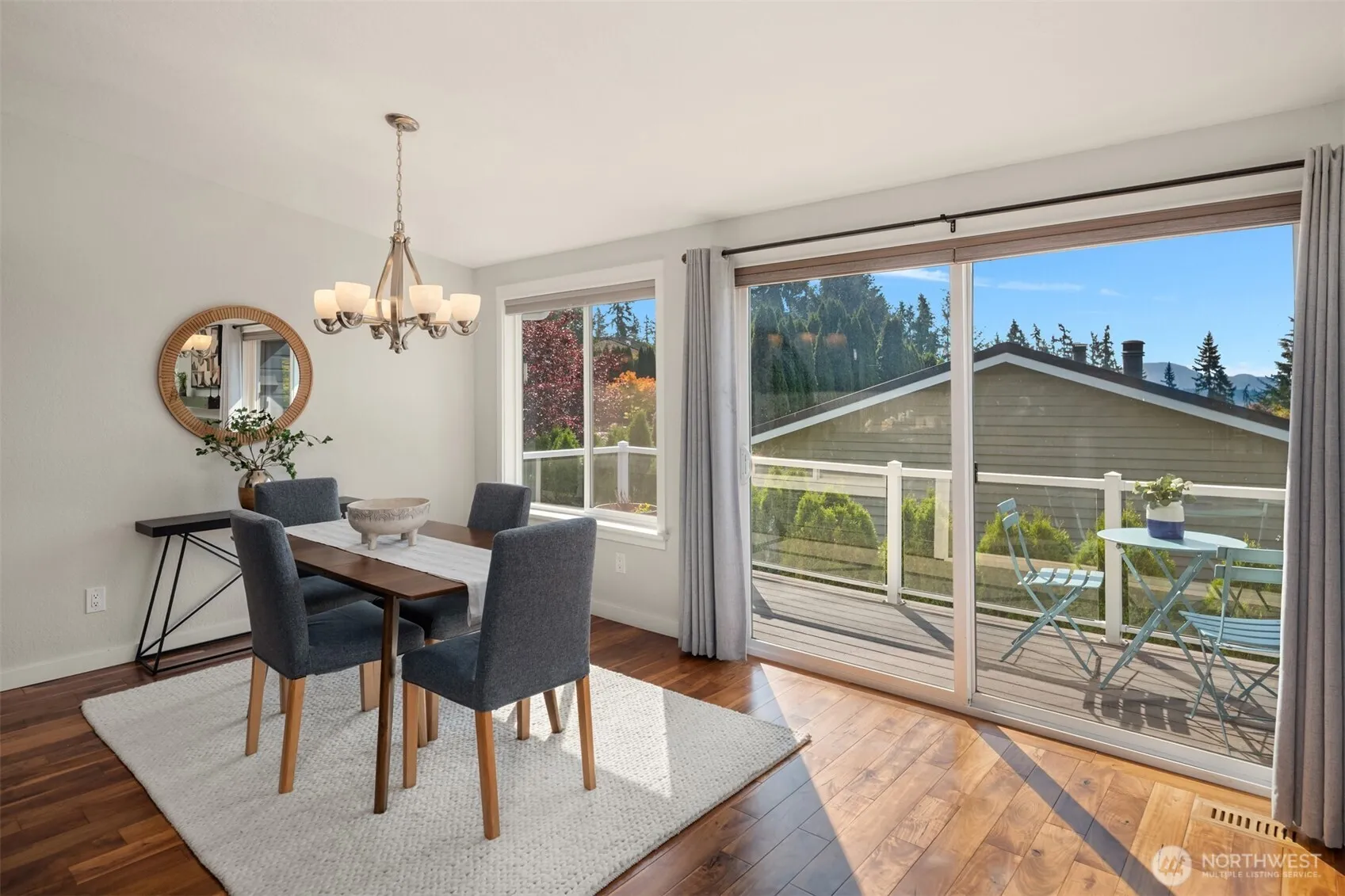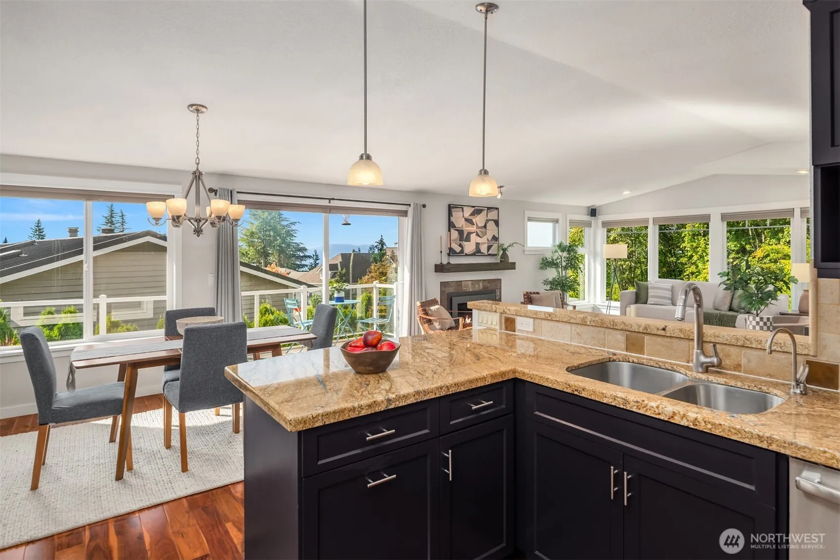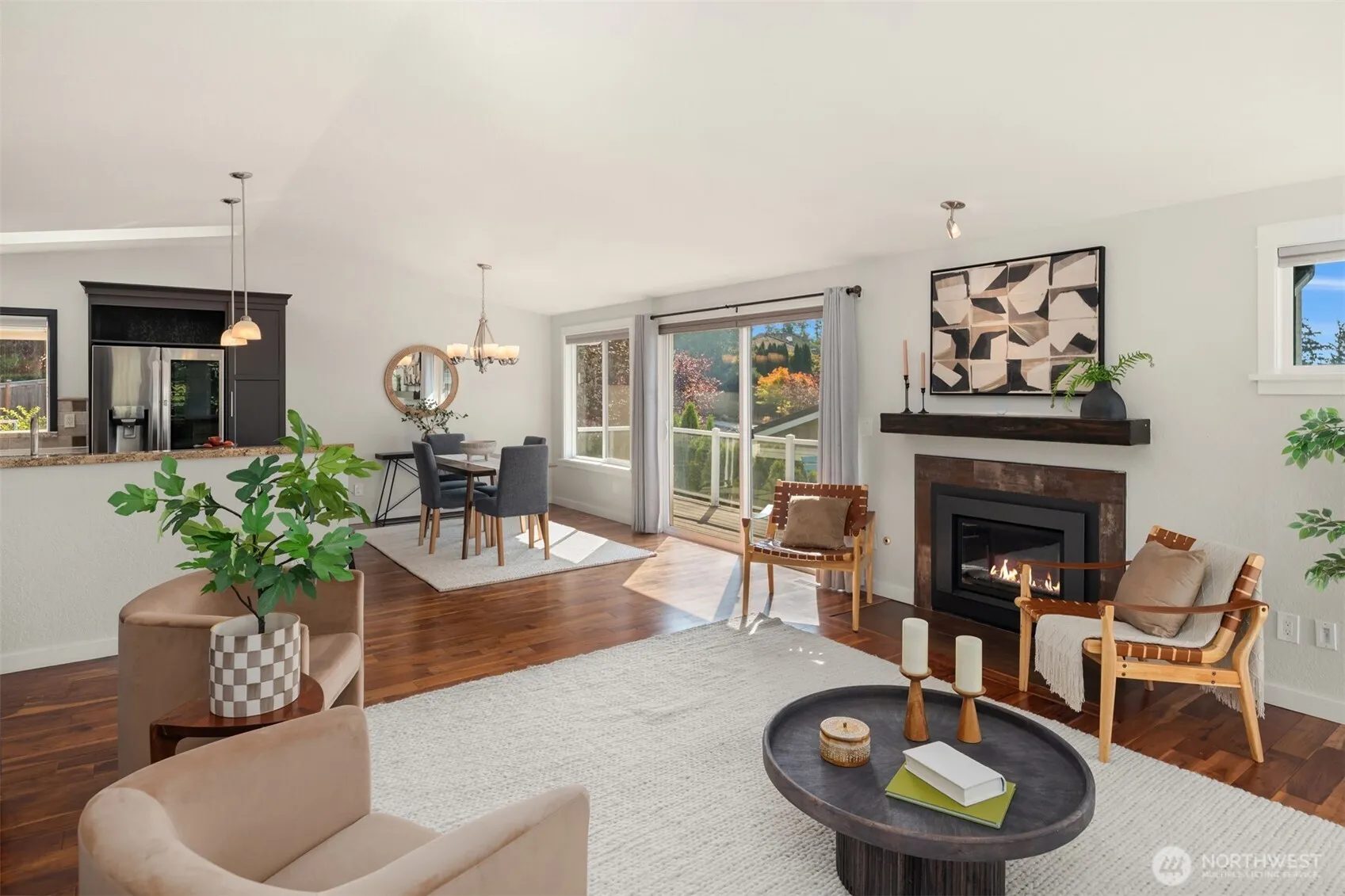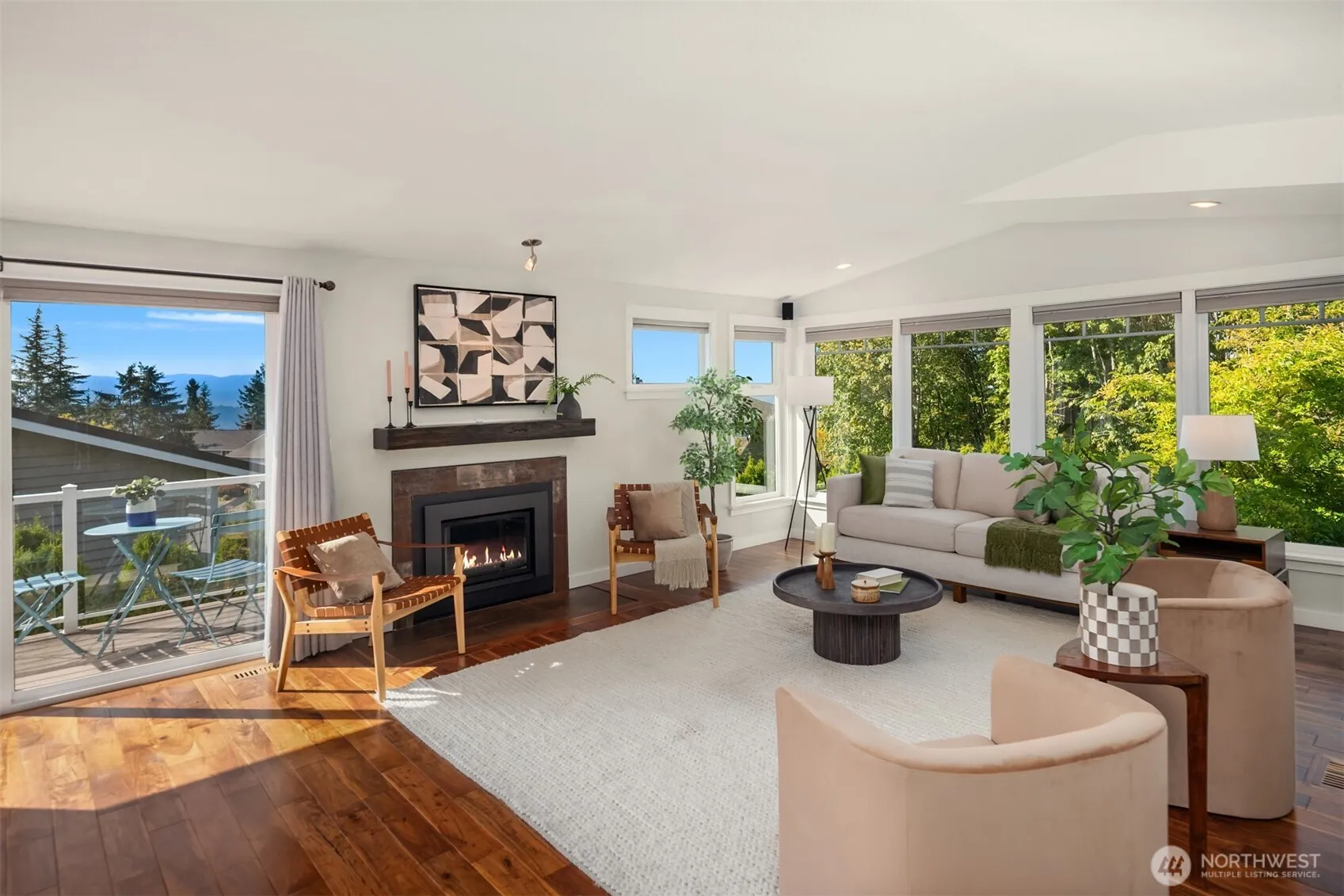 Bathed in natural light with peekaboo views of the lake, you feel right at home when you walk into this exceptional PNW home surrounded by tall evergreens and mature landscaping. Flip the switch on a rainy afternoon for fireplace warmth and ambiance or open all the doors and windows to let the sunshine in and enjoy the quiet of plateau living. A well appointed kitchen + dining area creates the perfect gathering space with unforgettable sunset views, and a serene primary bedroom down the hall offers a large private deck. Downstairs another bedroom + bonus room leading out to the patio and insulated shed *w/ electricity & water* for anything you dream up. Fenced and ready for furry friends, BBQ’s, all within steps from top schools and parks.