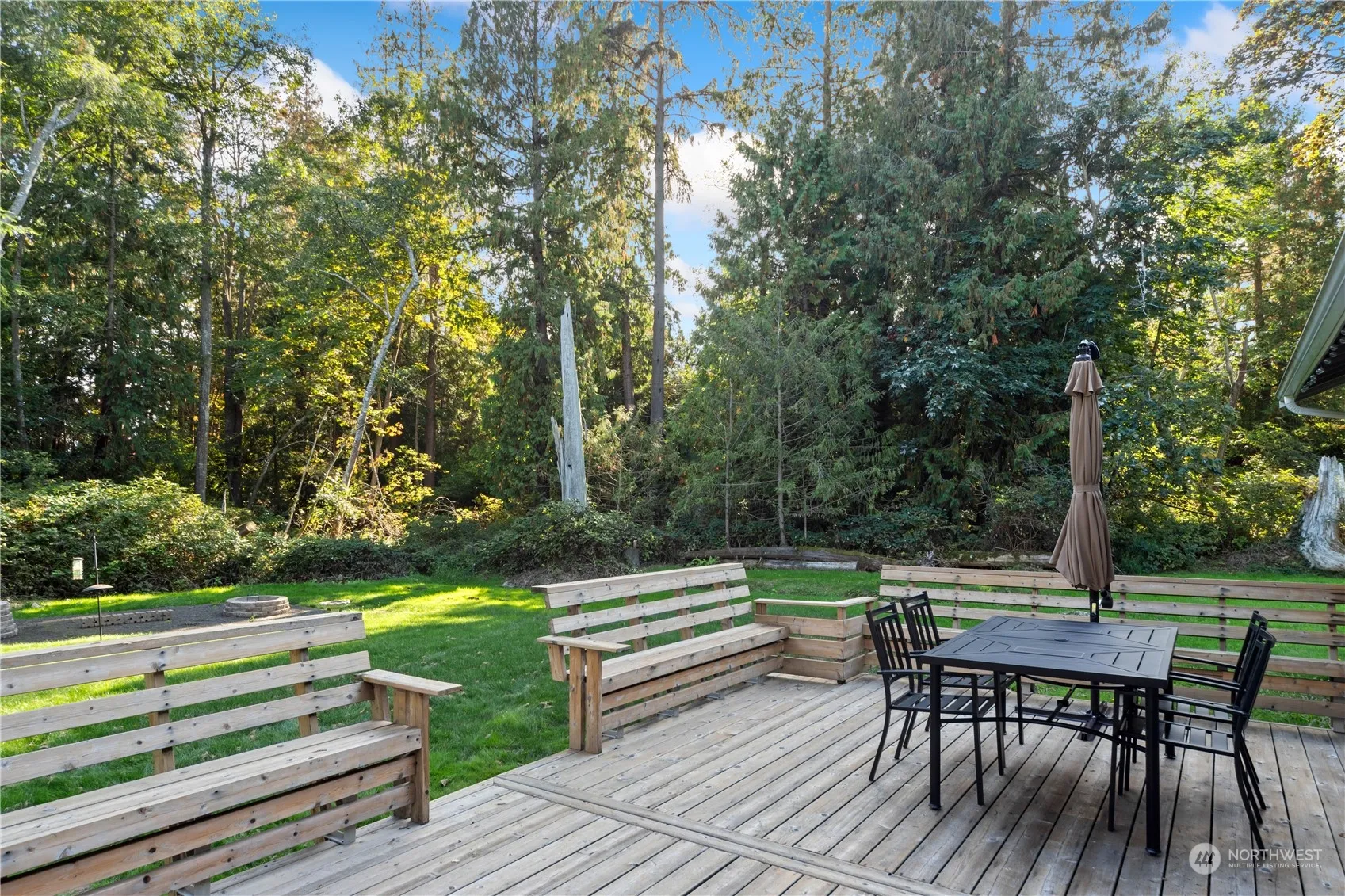 Gorgeous move-in ready rambler on a double lot w/ solar system for cheap electric bills! This classy & cozy updated home boasts a wood burning stove, heat pump & A/C, beautiful kitchen w/SS appliances & granite counters. Primary bedroom on one end of the house w/ a private spa like en-suite bathroom. Great layout w/ separated bedrooms & open living space. Spacious backyard offers a custom cedar deck w/built in seating & a fire pit to entertain & room to play + large driveway in front has ample parking & space for an RV or boat! This house is steps from the community beach, dock & clubhouse. Just 5 miles from Kingston ferries, Whitehorse Golf Course, schools & amenities, this has a great mix of comfort, convenience & Puget Sound living.