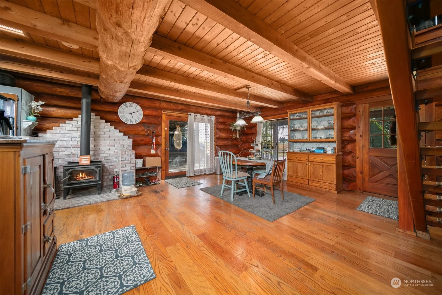 Step into this stunning log cabin home, where rustic charm meets modern comfort. With four spacious bedrooms and two and a half bathrooms, this true log cabin offers ample space for guests. The beautiful hardwood floors and vaulted ceilings create an open, airy atmosphere, inviting you to relax and unwind. Outside, discover a detached 25×30 shop, with radiant heated floors, perfect for hobbies or storage. Begin each day by sipping your favorite morning drink on the porch, soaking in the serene views of the surrounding landscape on 2.4 acres. This log cabin is not just a home; it’s tranquil retreat from the hustle and bustle of everyday life.