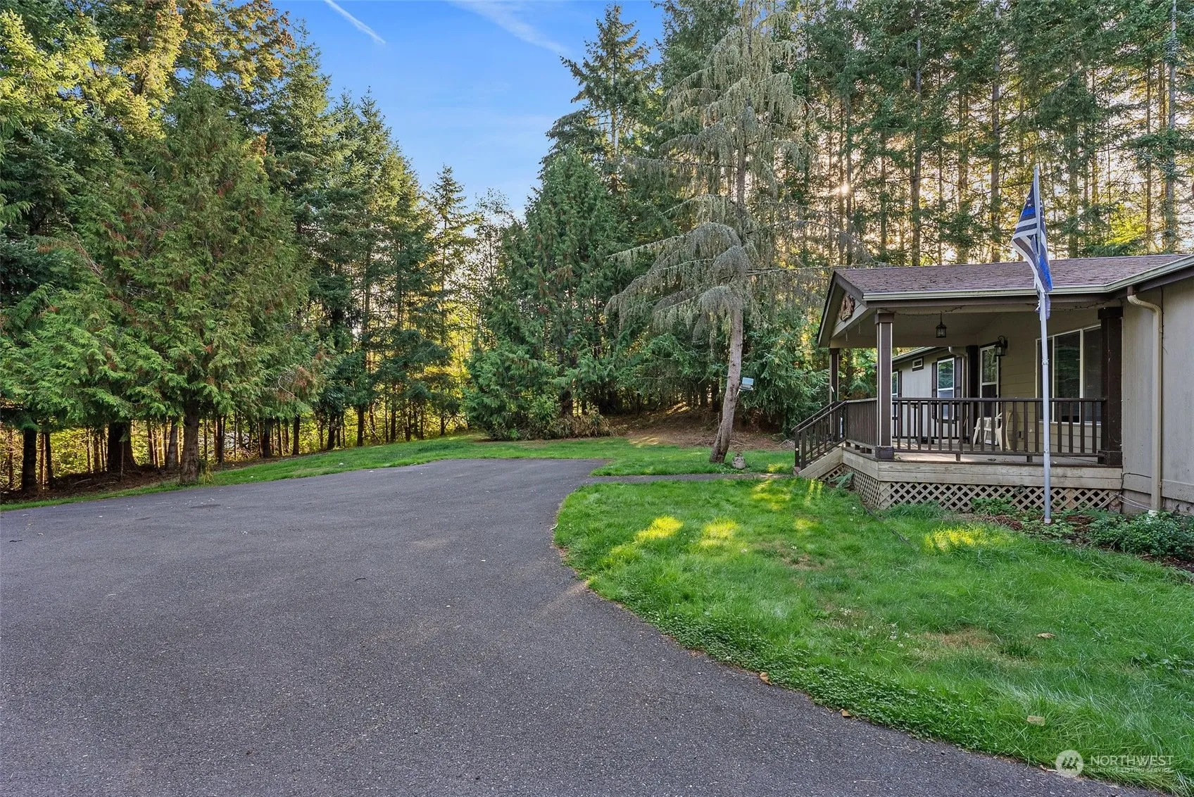 Welcome to 165 Juanita Way, a stunning retreat set on 2.2 picturesque acres bordered by lush trees, offering both privacy and tranquility. This double-wide manufactured home has been thoughtfully updated, featuring gorgeous granite countertops and new waterproof vinyl laminate flooring throughout. With three spacious bedrooms and two recently remodeled bathrooms, this home combines comfort with modern elegance. The primary bathroom showcasing a luxurious walk-in shower with high-end finishes. Extensive covered parking including dedicated RV parking and hookup. The impressive detached garage, over 1,000 sq ft, provides ample storage. Minutes from I5 This property offers rural living with easy access to shopping and efficient commuting.