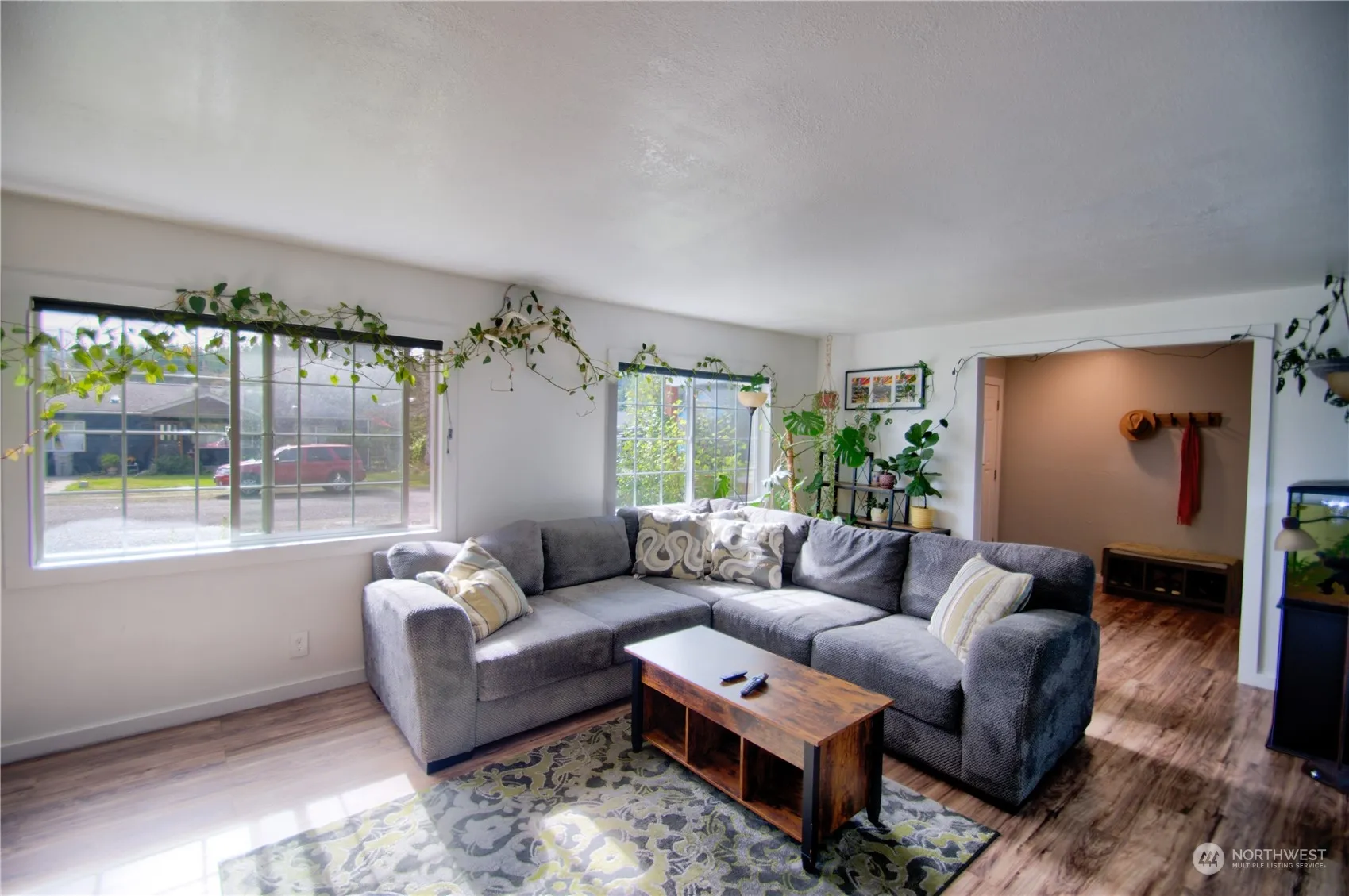 Fully renovated 2-bedroom, 2-bath home on a quiet dead-end street in McCleary offers serene living & modern amenities. 3rd bd converted to utility room. The property abuts to 500+ acres of forest w/ access to scenic trails & the salmon-bearing Wildcat Creek, which features a protected 150-ft green buffer. The backyard is a gardener’s dream, w/ 400 sq ft of garden space, raised beds, & a pollinator-friendly landscape of native species. Inside, enjoy an updated kitchen with quartz countertops & stainless appliances, LVP flooring, a spacious living room with an EPA-rated fireplace, & a master suite with French doors to the back deck & hot tub, renovated bathroom luxurious walk-in shower w/ exposed brick and a slate floor. USDA 0 down Eligible