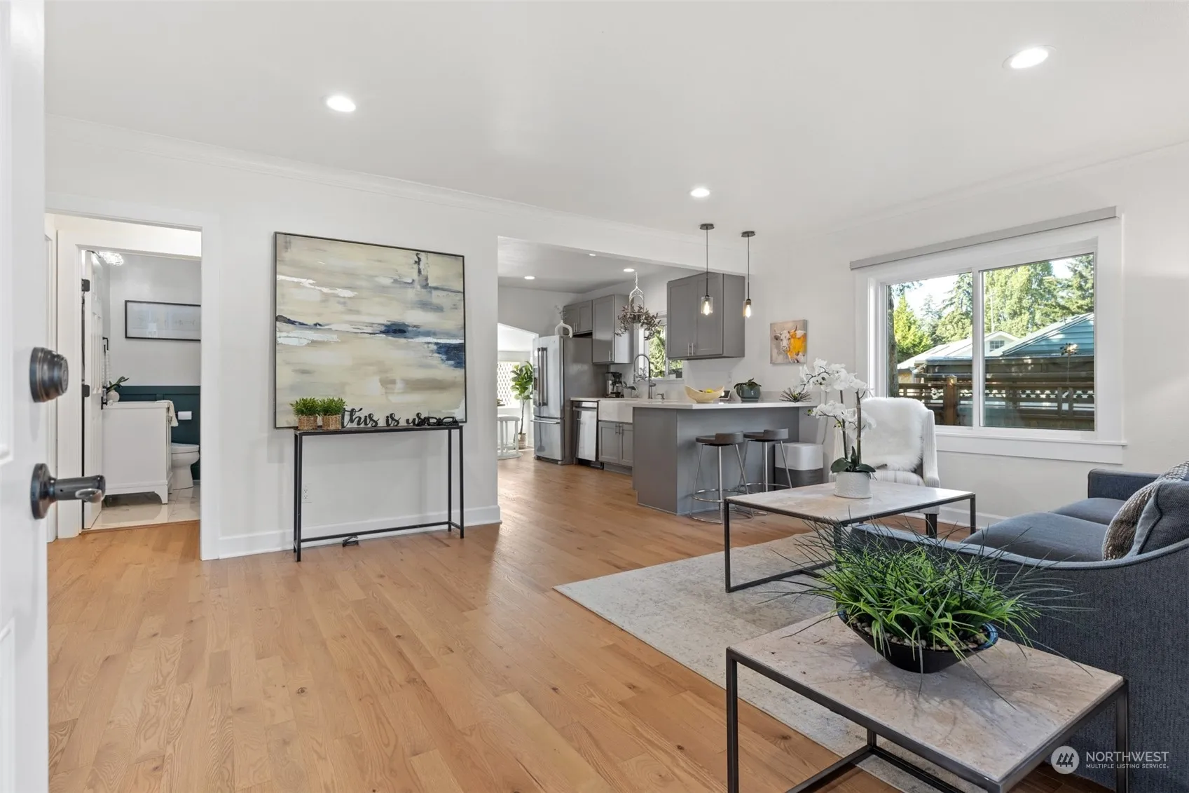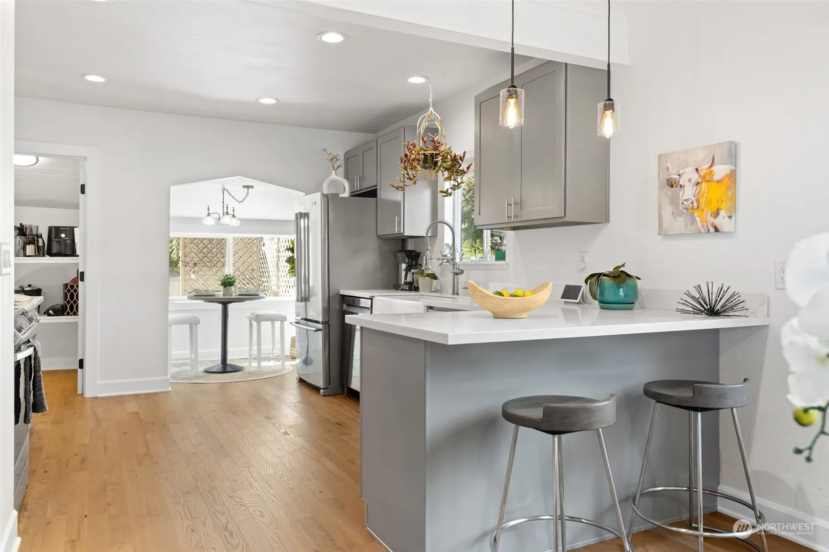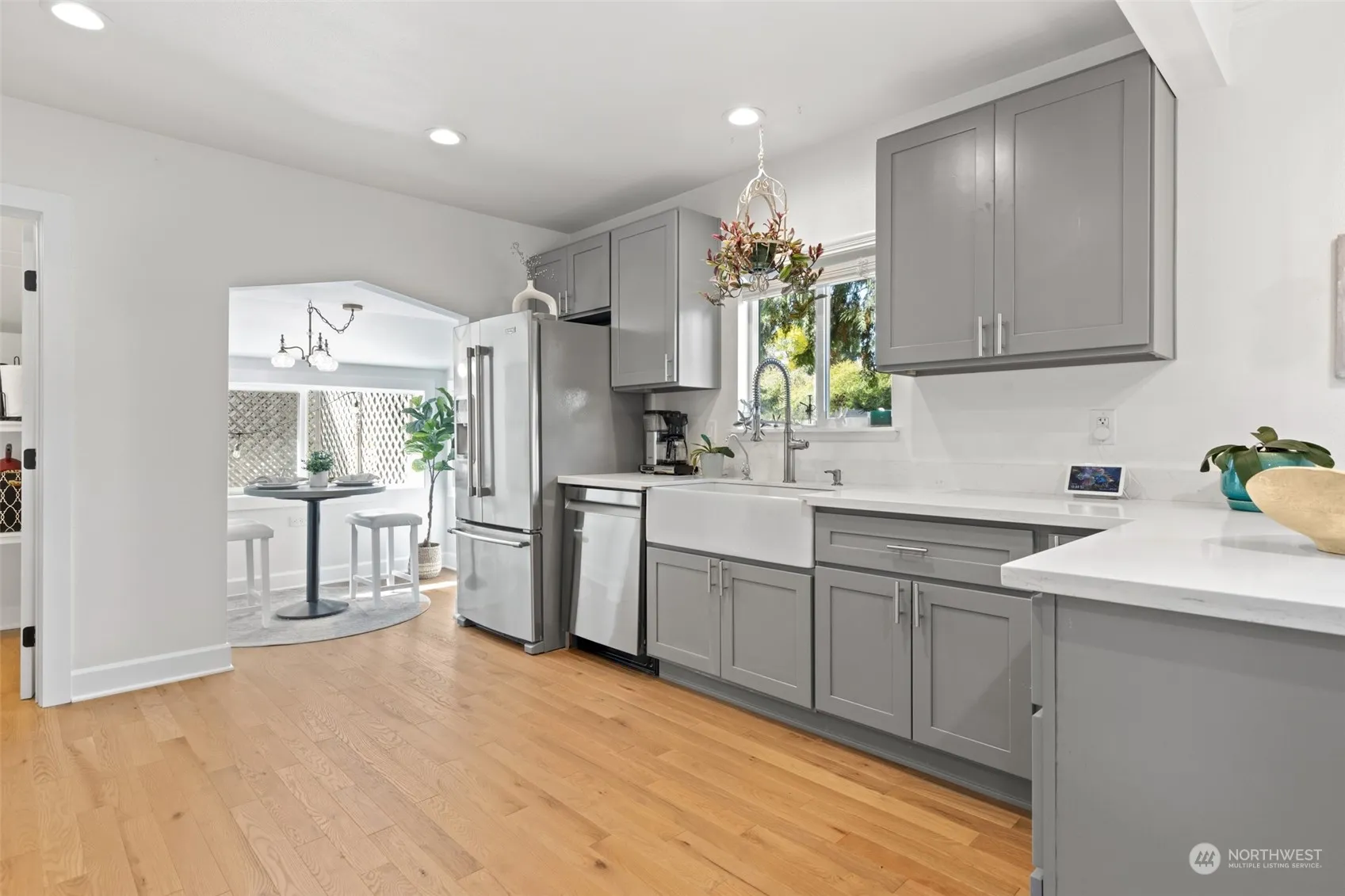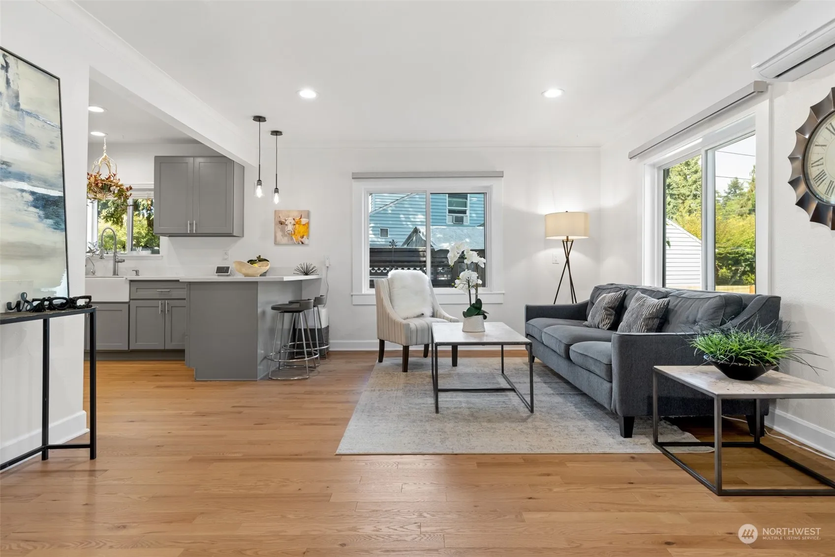 Come & see this charming Burien bungalow! A revitalized renovation of a 4-bed, 1.75-bath home on a near 1/4 acre lot. Relax in the bright & open living room w/REAL oak hardwoods or entertain in the modern kitchen w/SS appliances, farmhouse sink, induction stove, shaker cabinets, soft-close cabinetry, quartz counters & abundant natural light. Stay warm/cool with efficient AC/mini-splits throughout. Main floor bath features full tile enclosure+soaking tub+designer touches. Private fully fenced backyard is an oasis with generous room to BBQ w/friends. Detached 2-car garage = plenty of room for toy storage, or potential for an DADU(?). 3 year old roof. Tons of parking for vehicles/RV/boat, this home offers comfort in a prime location.