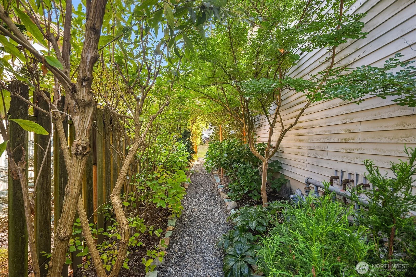 Desirable end-unit townhome w/ fenced yard & rare 591 SF 2-car tandem garage. Main floor features spacious sunny kitchen & pantry area with coffee bar flowing to the open dining and living room areas w/ gas fireplace. Main area also has 1/2 bath & utility room. The raised deck overlooks backyard and the bonus shed/greenhouse. Yard is lushly landscaped, a private oasis to relax. Top floor features the primary suite with attached full bath. Upper floor also features the 2nd & 3rd bedrooms which share a huge full-bath. Roof was just replaced for the entire building. Low HOA dues. All interior doors have been upgraded to solid-core, this home has many custom features. Driveway has additional off-street parking for 2+ cars. Gas forced-air heat.