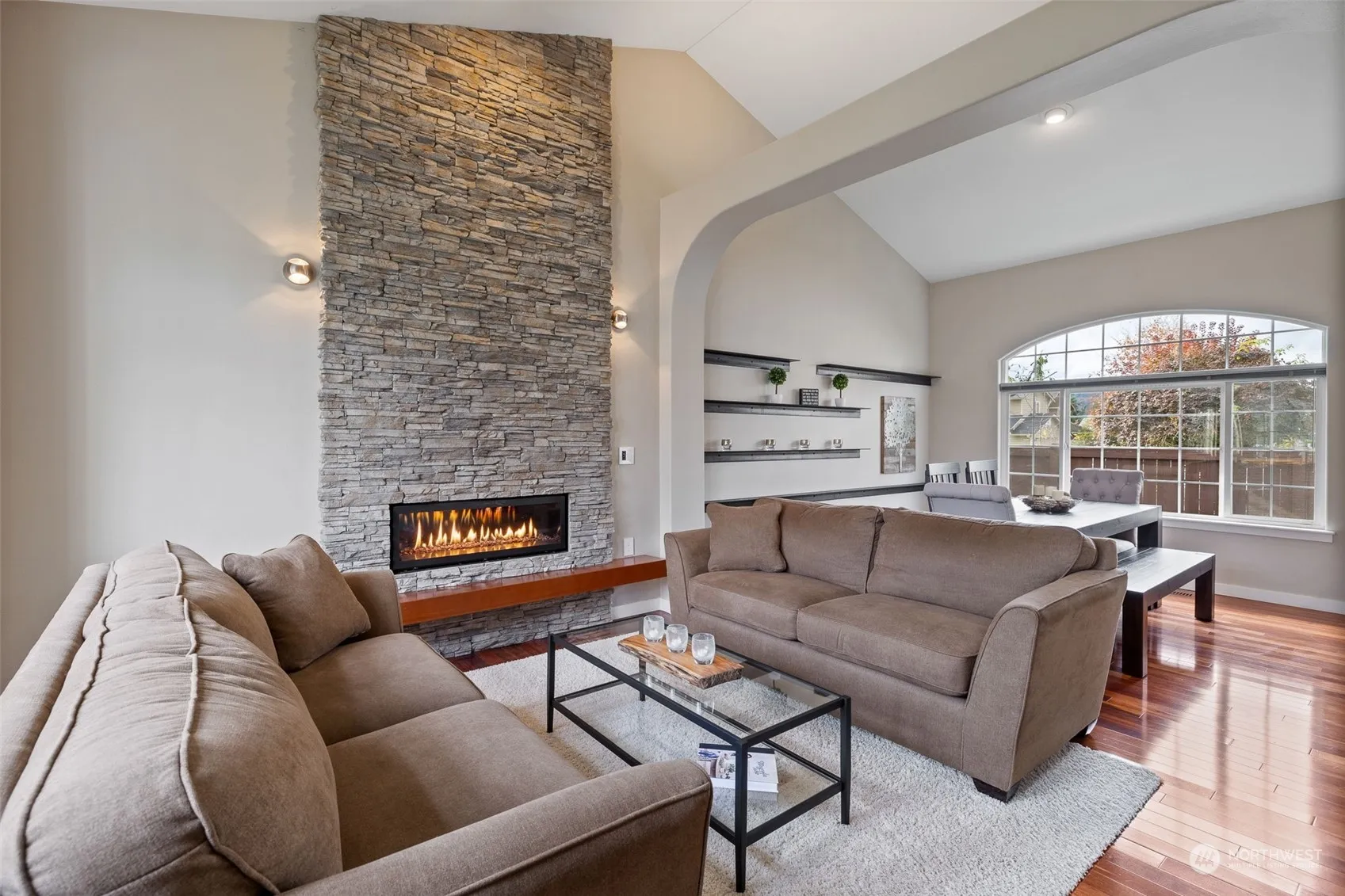 Stunning – Fully Updated Modern Craftsman in coveted Cambridge Park. This meticulously kept 4 bd 2.5 bath home sits on a premium corner lot. Home features open vaulted ceilings, exquisite Tigerwood floors thru out, reclaimed wood accents, cozy 42″ Lenox gas fireplace adorned w/ floor to ceiling stacked stone & a solid wood beam mantle. Spacious living and dining areas filled w/ tons of natural light. The large modern kitchen boasts stainless appliances, sealed concrete slab countertops, tile floors and opens to a second living/entertainment rm w/ robust built in sound system. Spacious prim w/ 5 piece bath, & walk-in closet. Huge double deep 3 car garage, new roof, HW heater, furnace & AC. Close to schools, parks, & trails. A Must See!!!