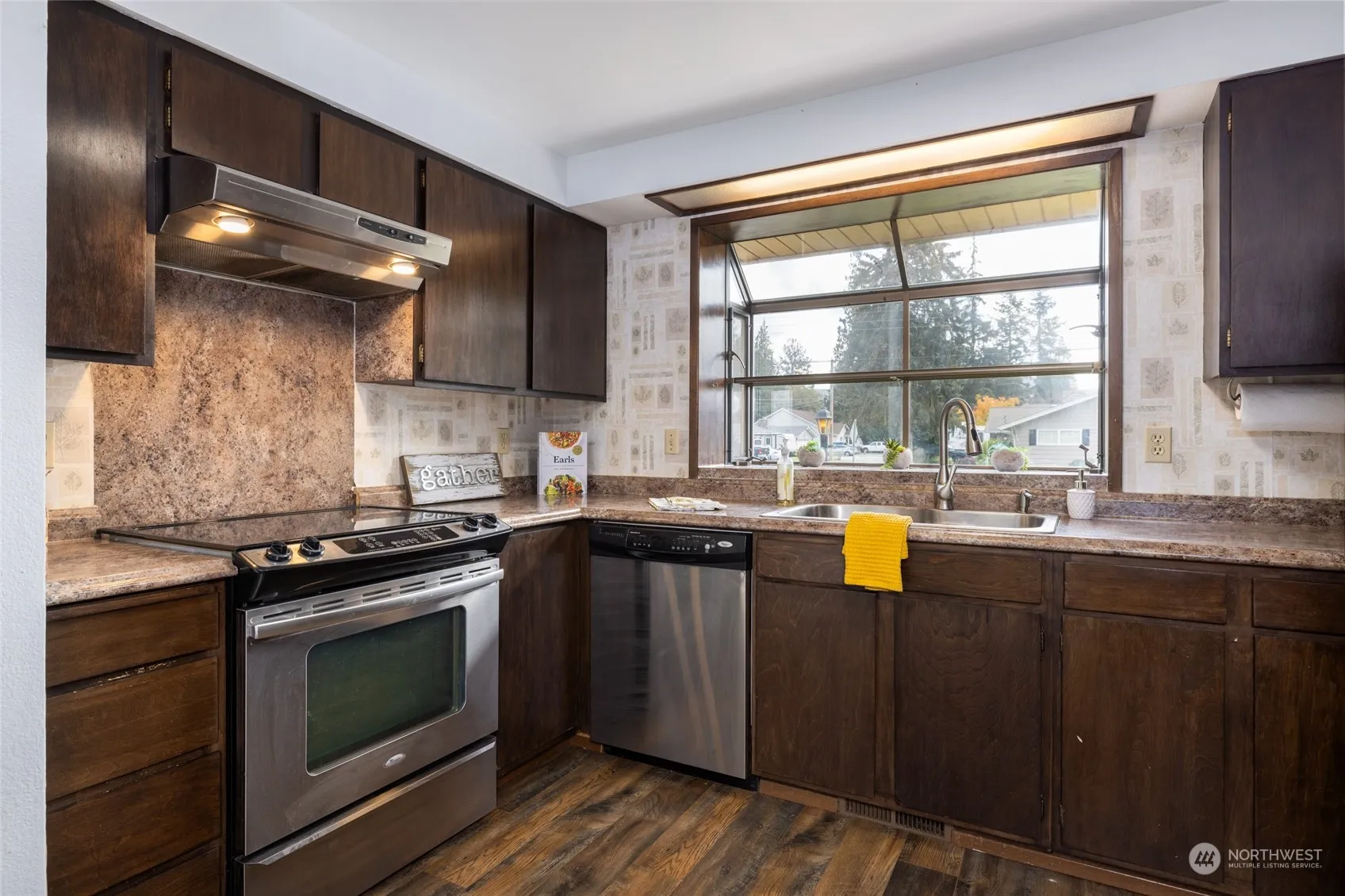 Welcome to this charming single-level brick home, where comfort and quality blend. The spacious primary bedroom invites you outdoors through sliding glass doors, revealing a private and lush backyard with majestic trees. Say goodbye to carpet, this home has laminate throughout. Bedrooms boast walk-in closets. Spend cozy winter nights by the wood-burning stove, a perfect retreat from the cold. Then there’s the ultimate bonus room, an insulated and heated outbuilding—a versatile space that could be your new art studio, playroom, or accessory dwelling unit for guests, with the potential for extra income (buyer to verify). With an attached garage and a peaceful neighborhood, this home offers everything you need to create your own sanctuary.