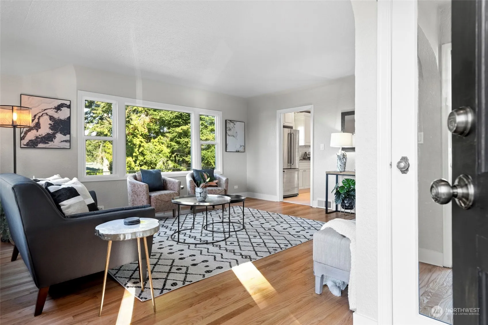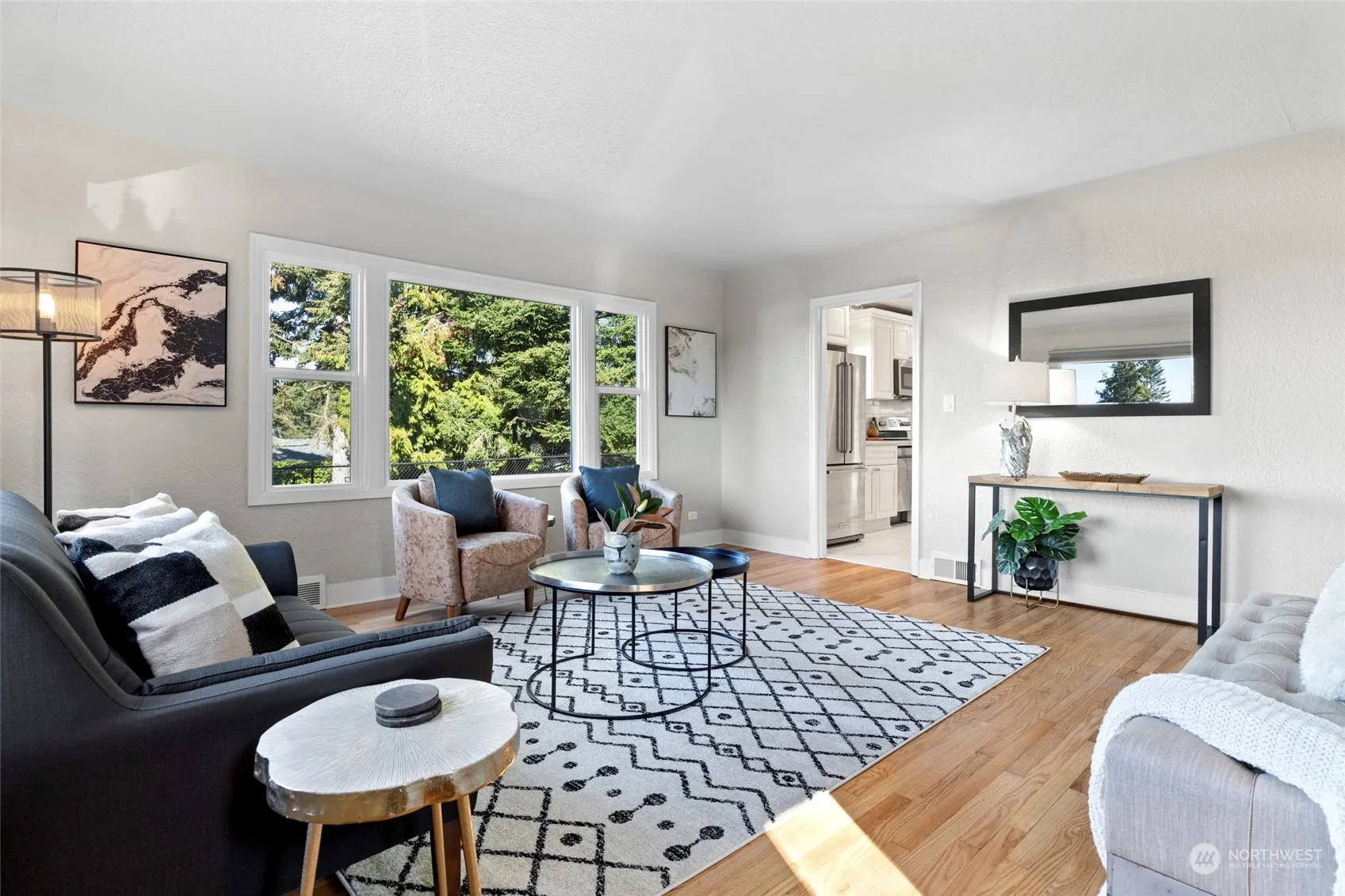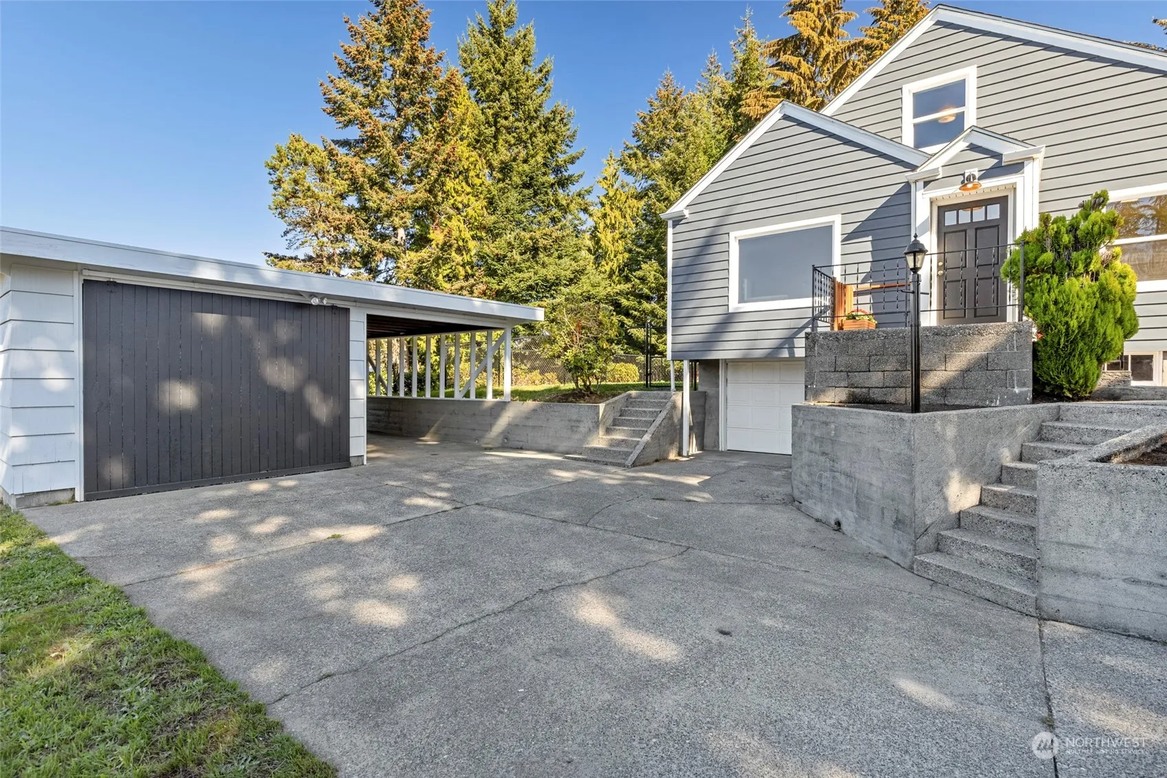 Prime location on large lot in University Place. Main level living with large windows, refinished original hardwood floors and arched entry. Updated bright kitchen w/center peninsula features white painted cabinets, SS appliances, full height glass subway tile backsplash, lighting and breakfast nook. Full bath and 2 bedrooms on main. Upper level loft and primary retreat with peek-a-boo sunset views. New bath features walk-in shower, tiled walls, built-in shelves and walk-in closet. Huge unfinished basement and 1 car attached garage. Detached RV/boat parking in 9’H x 11’W x 28’L outbuilding with 2 sliding barn doors and carport. Fenced back yard with additional yard space. Close to UP schools, shopping and parks.