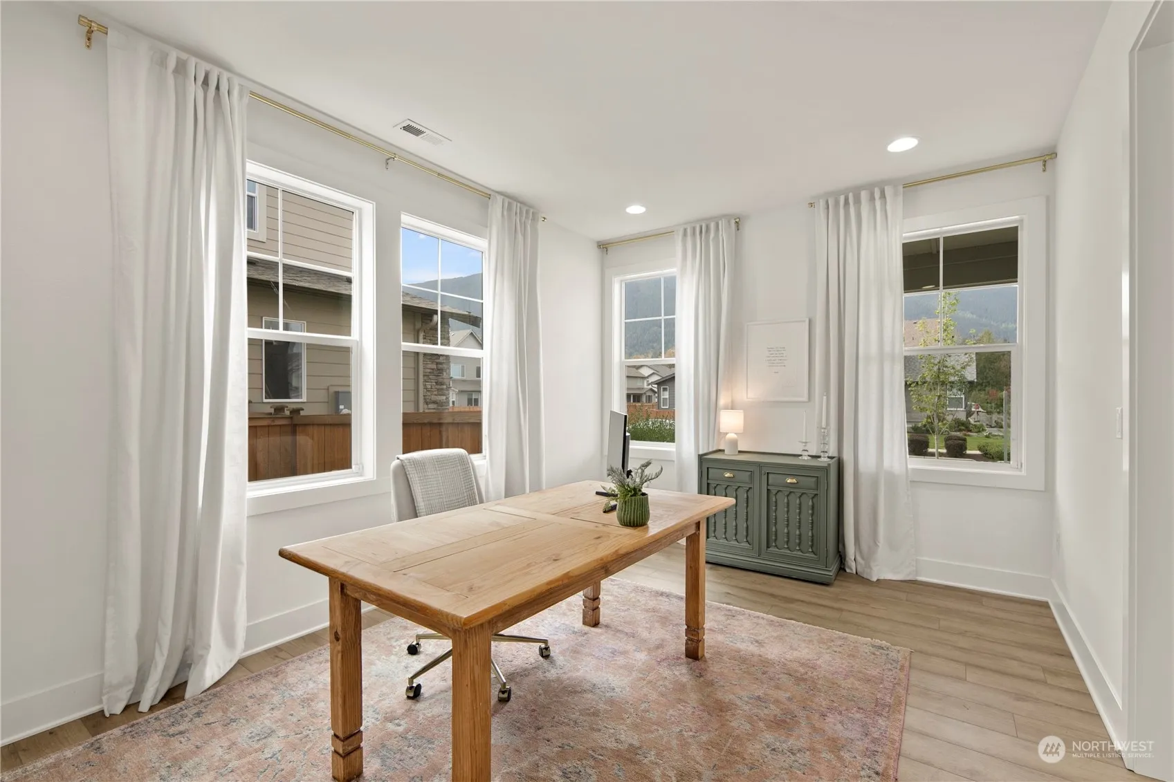 Nestled in the heart of North Bend, 1806 Canyon Avenue offers the perfect blend of modern luxury and serene mountain views. This turn-key home features 5 spacious bedrooms, 3.25 baths, an office, all within an open-concept design boasting 20-foot living room ceilings and natural light. The gourmet kitchen, with stainless steel appliances and an oversized island, is perfect for entertaining. Outside, enjoy a beautiful backyard with covered patio, fruit garden, and stunning Mt. Si views. Additional highlights include a 3-car garage and a large shed for extra storage. Located just minutes from schools, trails, parks, and downtown North Bend, this home provides a peaceful retreat with easy access to city amenities. LS# 2297529.