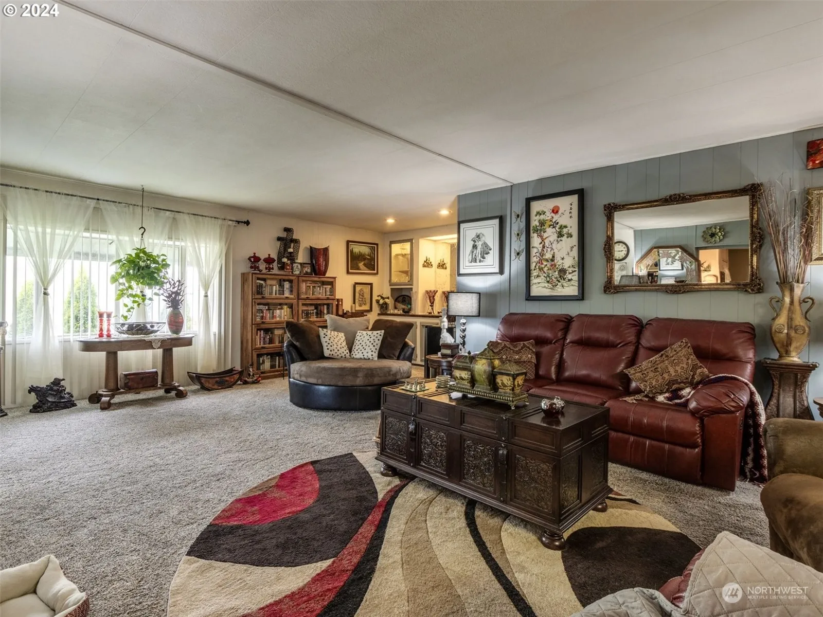 Experience tranquil living at Tim Wa Estates, a welcoming 55+ community. This triple-wide home offers plenty of room with 3 bedrooms and 2 full bathrooms. The primary suite boasts a generous walk-in closet, double vanity, and a luxurious soaking tub, while the second bathroom has been updated with a brand-new walk-in shower. The living room is ideal for entertaining, featuring a wet bar for serving drinks, and sliding doors that lead to a covered deck. Outside, enjoy the serene atmosphere with blooming flowers and extra storage in the tool shed. With 3 parking spaces, well-maintained central AC, and recent upgrades like a newer water heater and sleek vinyl flooring, this home is a must-see. Schedule your tour today!