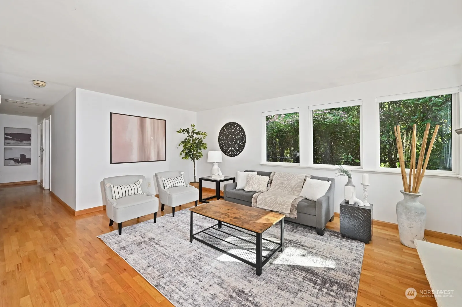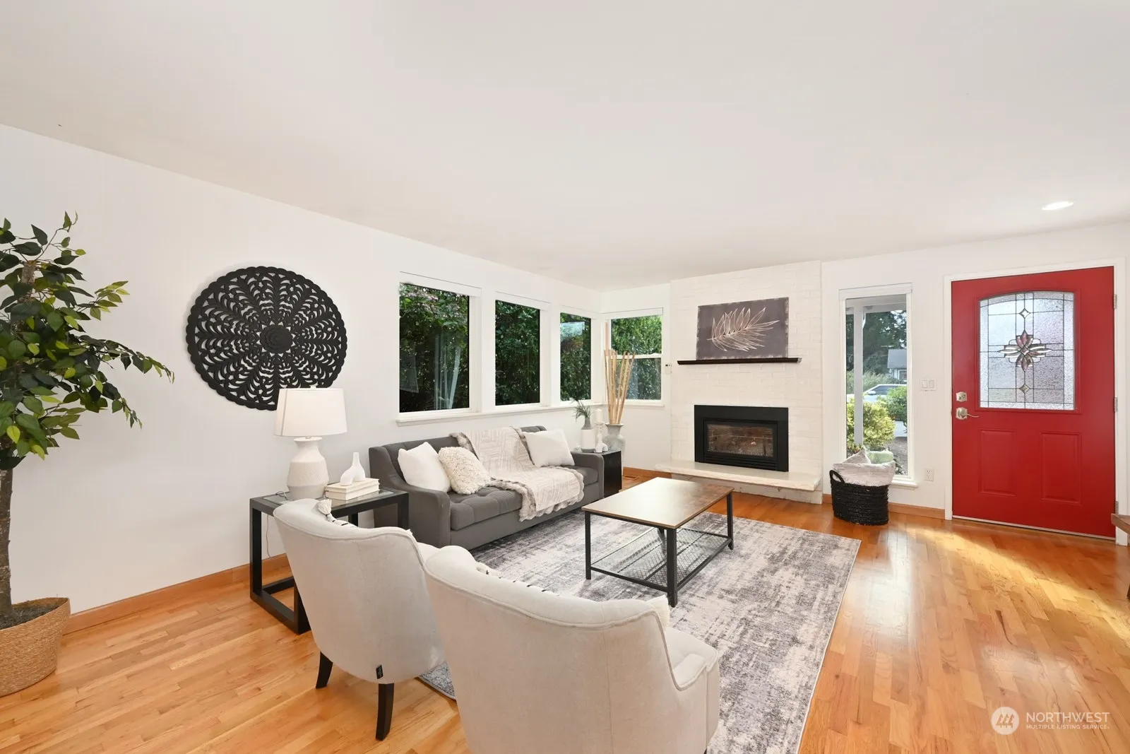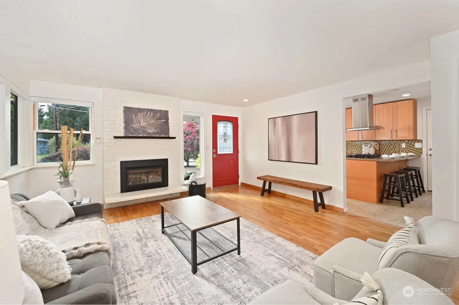 Delightful 3 bedroom, 1.5 bath mid-century rambler with numerous updates and move-in ready. The renovated kitchen with modern stainless steel appliances, gas fireplace, and refreshed bathrooms make this home a perfect blend of style and convenience. Natural light floods in through large windows, while hardwood floors and a flowing circular layout create a bright, spacious feel. All new paint throughout. The sunny, fully fenced backyard is a paradise for gardening enthusiasts, great for dogs and more. Oversized 2-car garage provides tons of storage for all your gear. Plenty of room to expand! Ideally located near grocery stores, shopping, public transit, and both I-5 and 405, this charming home is ready for you to move in and enjoy!