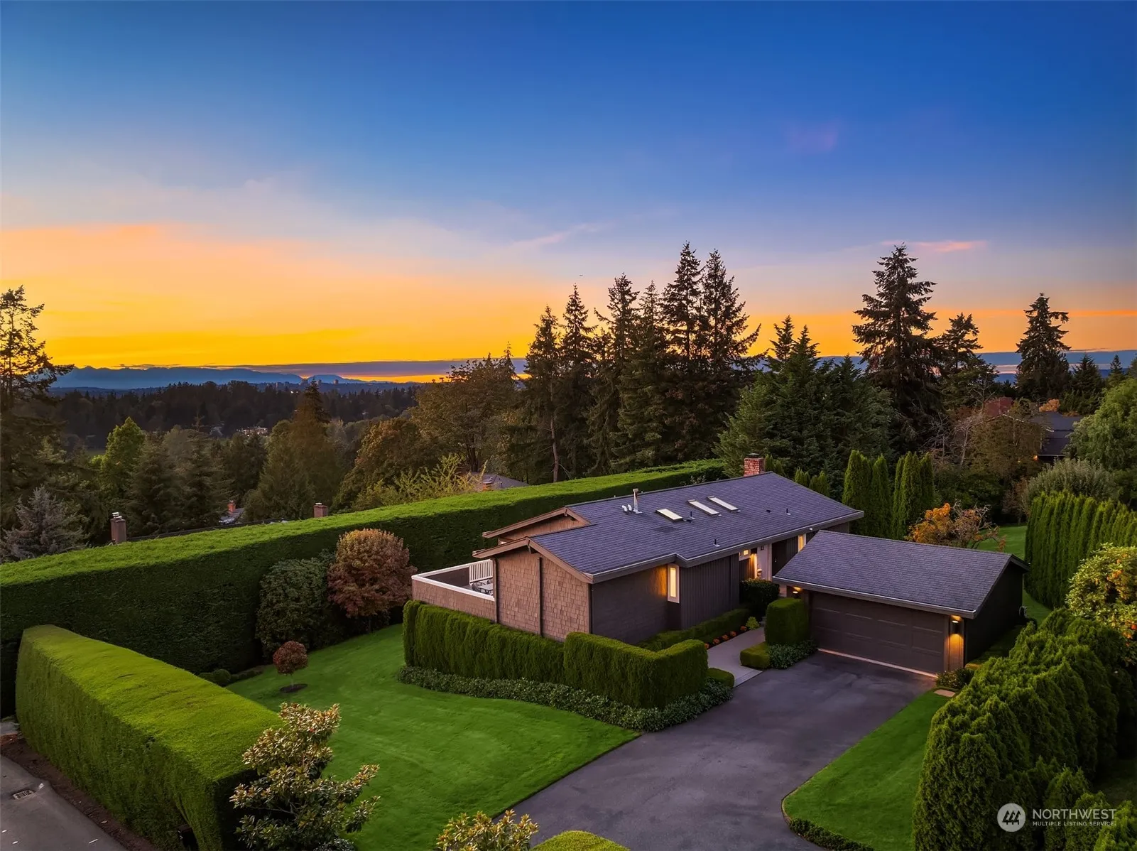 Experience airy sophistication on Clyde Hill at this renovated Mid Century. Soaring, light-filled spaces & western views of the lake, Seattle skyline & Olympic Mountains create a serene oasis in one of the Eastside’s favorite communities. Extensive renovations have created a place of light & style with a distinctly MidMod vibe. Walls of windows illuminate the interiors & French doors out to the deck provide lovely indoor/outdoor living for entertaining & watching the sun set. View primary suite perfectly located on the main, while the lower level offers 3 additional bedrooms (one currently an office.) Half+ acre lot with room for gardening & play. Close to Overlake Golf & Country Club, terrific schools, parks & Downtown Bellevue amenities.