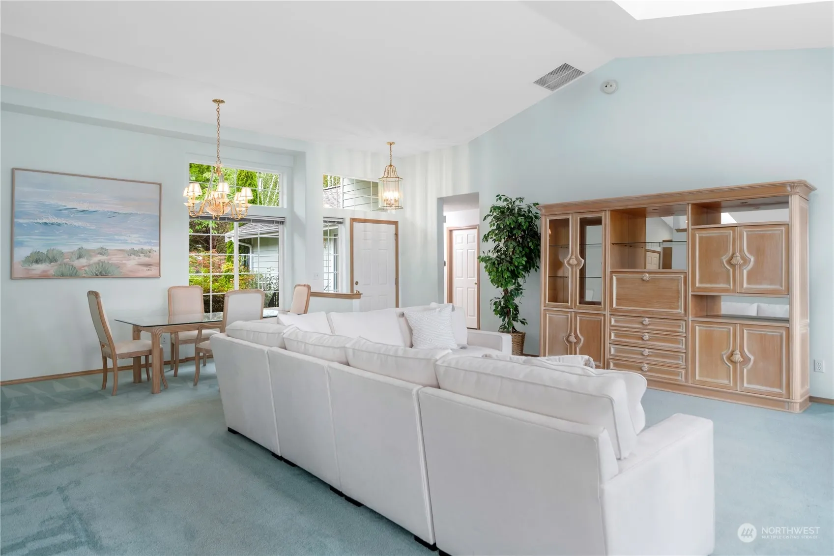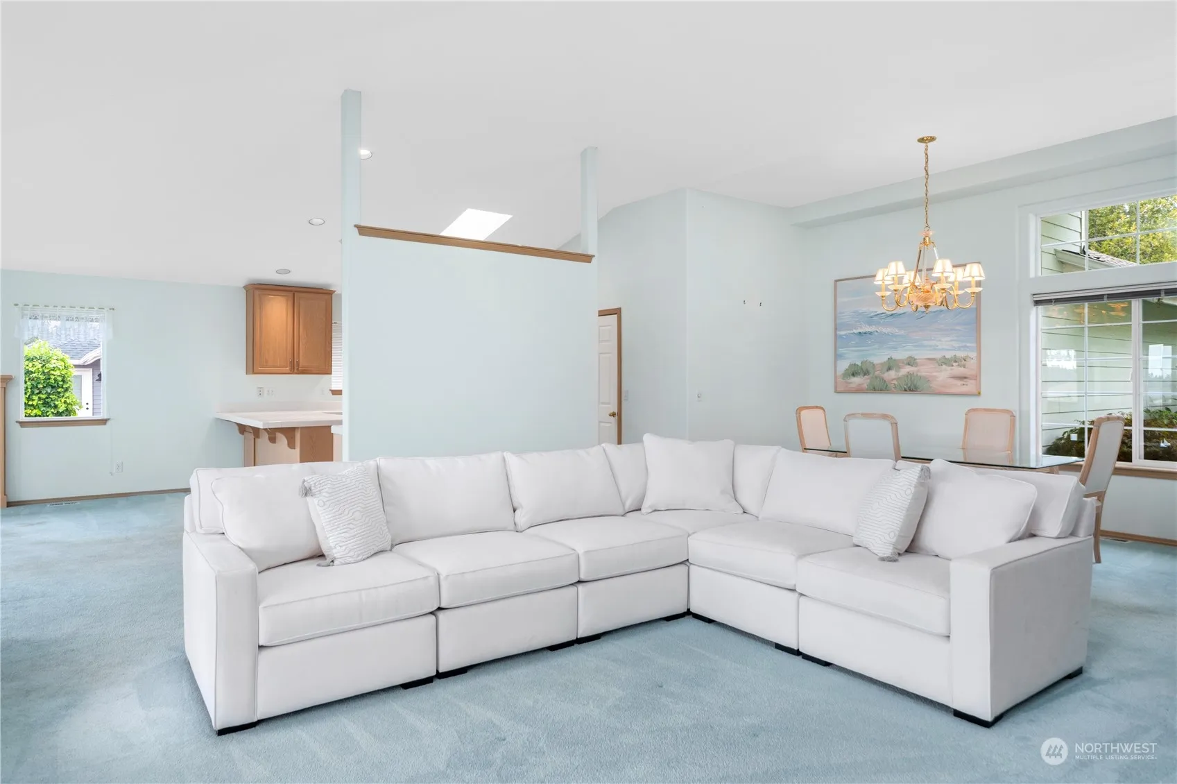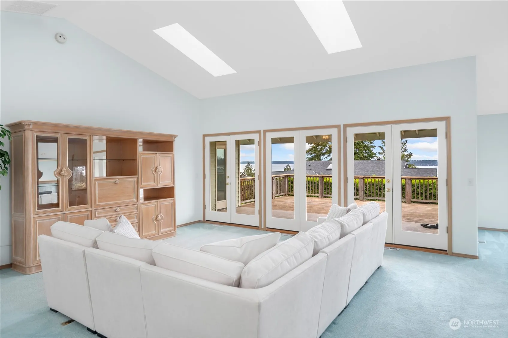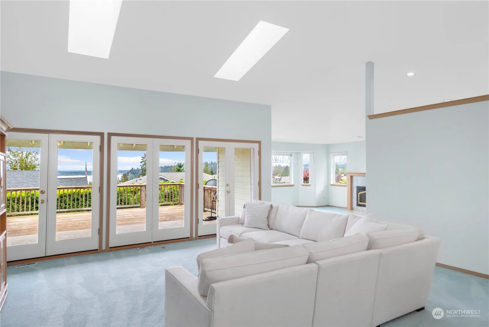 Let the sunshine in! This spacious, light-filled view home is ready for your personal touches with a large living room and a cozy great room, with an Extraordinaire fireplace off the tiled kitchen. The large deck, which overlooks the Shipping Lanes and Cascade mountain range, is partially covered for year-round use. The primary suite, a guest bedroom and bathroom, and an office with closet, complete the main level. The lower level, which is open and spacious for multiple uses, offers walk-out access to a patio and the back yard. The lower level also features a three-quarter bathroom. Wonderful outdoor privacy in the back yard with a charming pond. Side yard features raised beds and a small fruit orchard. Membership in the Beach Club.
