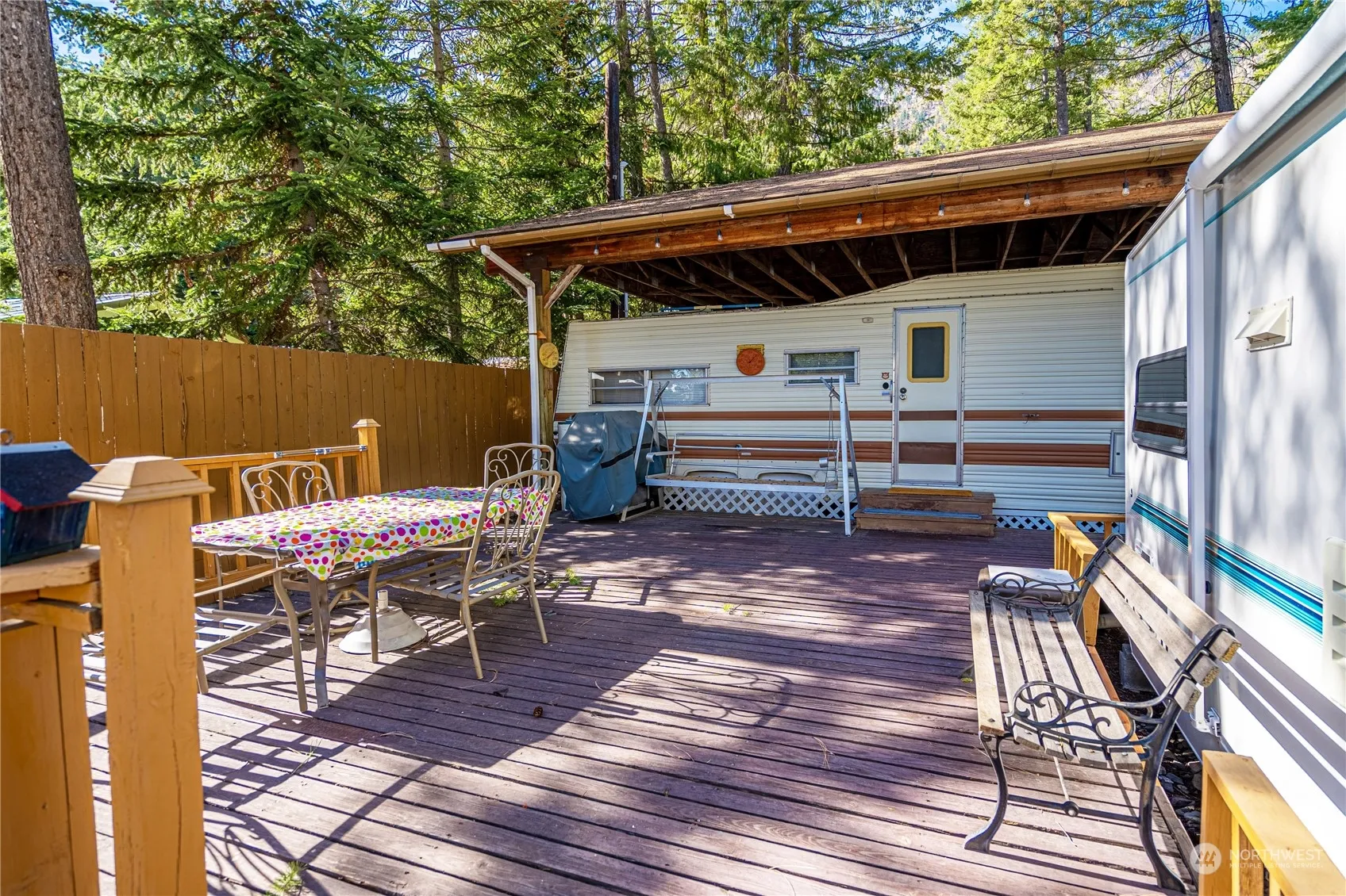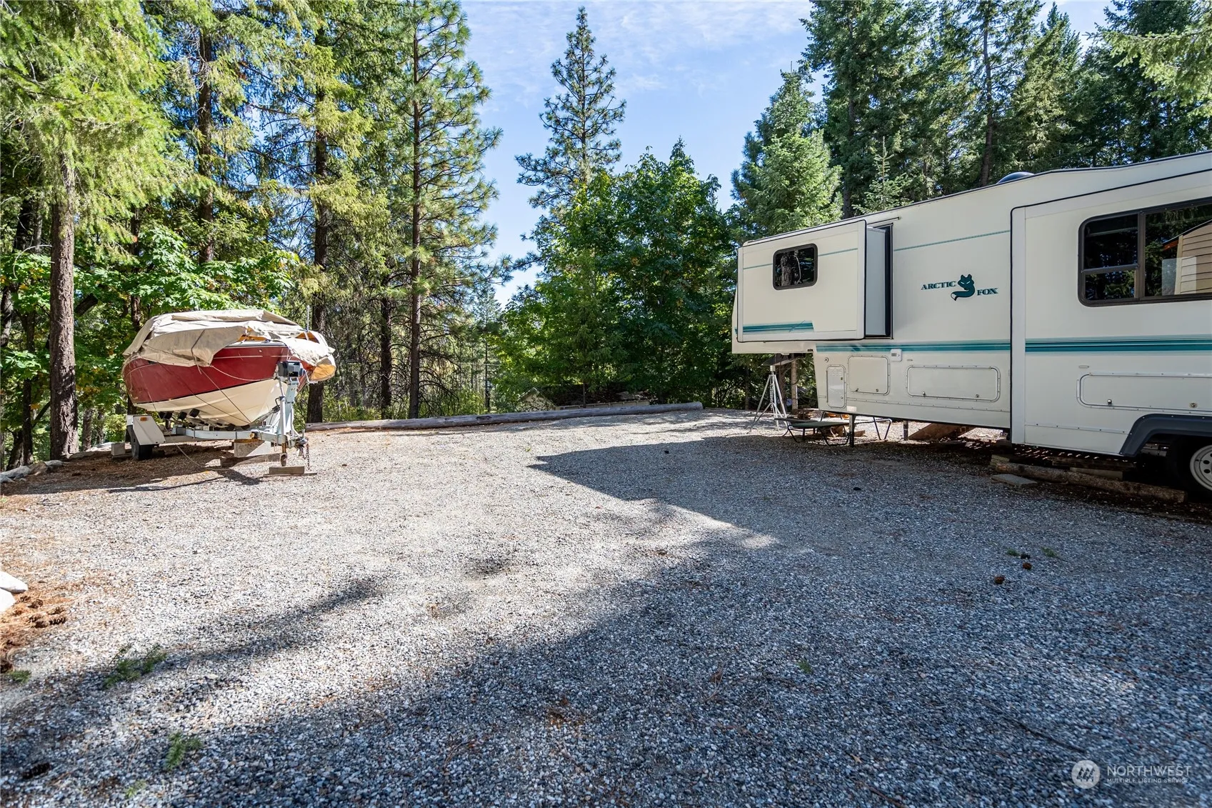 Summer isn’t over yet! Get ready for the ultimate escape at the fabulous Lake Chelan Yacht Club! This gem showcases not one, but TWO pristine Fifth Wheel Trailers, a 1999 35′ Arctic Fox and a retro 1979 30′ Kit—both lovingly cared for! With a gigantic RV carport and plenty of outdoor space for those epic BBQs, you’ll be the host with the most! Roll down the paved driveway to find a parking paradise with room for all your friends. Plus, it’s got its very own septic tank and propane tank. Dive into the community’s exclusive beach, complete with a private clubhouse, boat moorage, and a treasure trove of amenities! Spend your sunny days surrounded by pine trees and enjoy the perks!