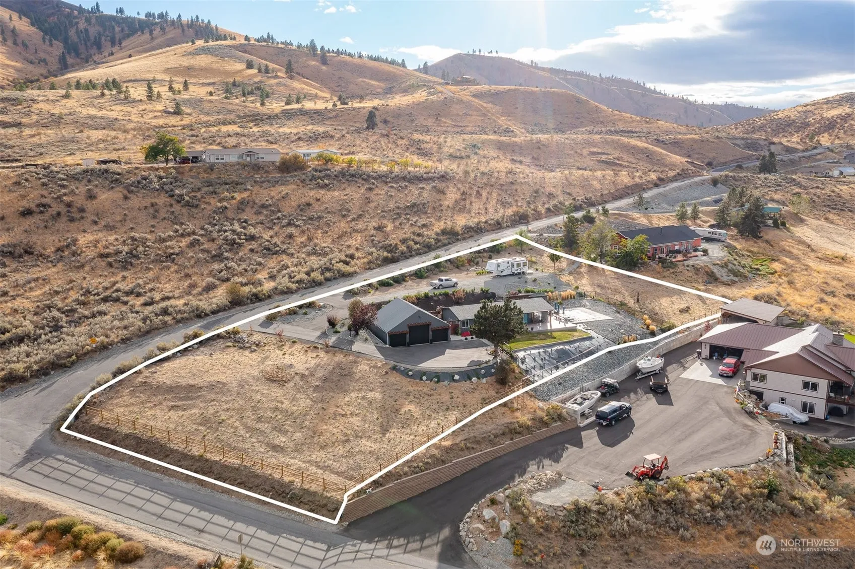 Located in the coveted private community on Chelan Butte, this rare property spans nearly 1.25 acres of endless potential. The completely remodeled home features a new deck and fencing, along with breathtaking views stretching from Chelan to Manson. Enjoy outdoor living with a pool, BBQ shed, and outdoor shower. The insulated 3-car garage comes equipped with heating and A/C, offering year-round comfort. With ample space, the possibilities are endless—add another garage, a guest house, or even build your dream home on this expansive lot. A truly unique opportunity!