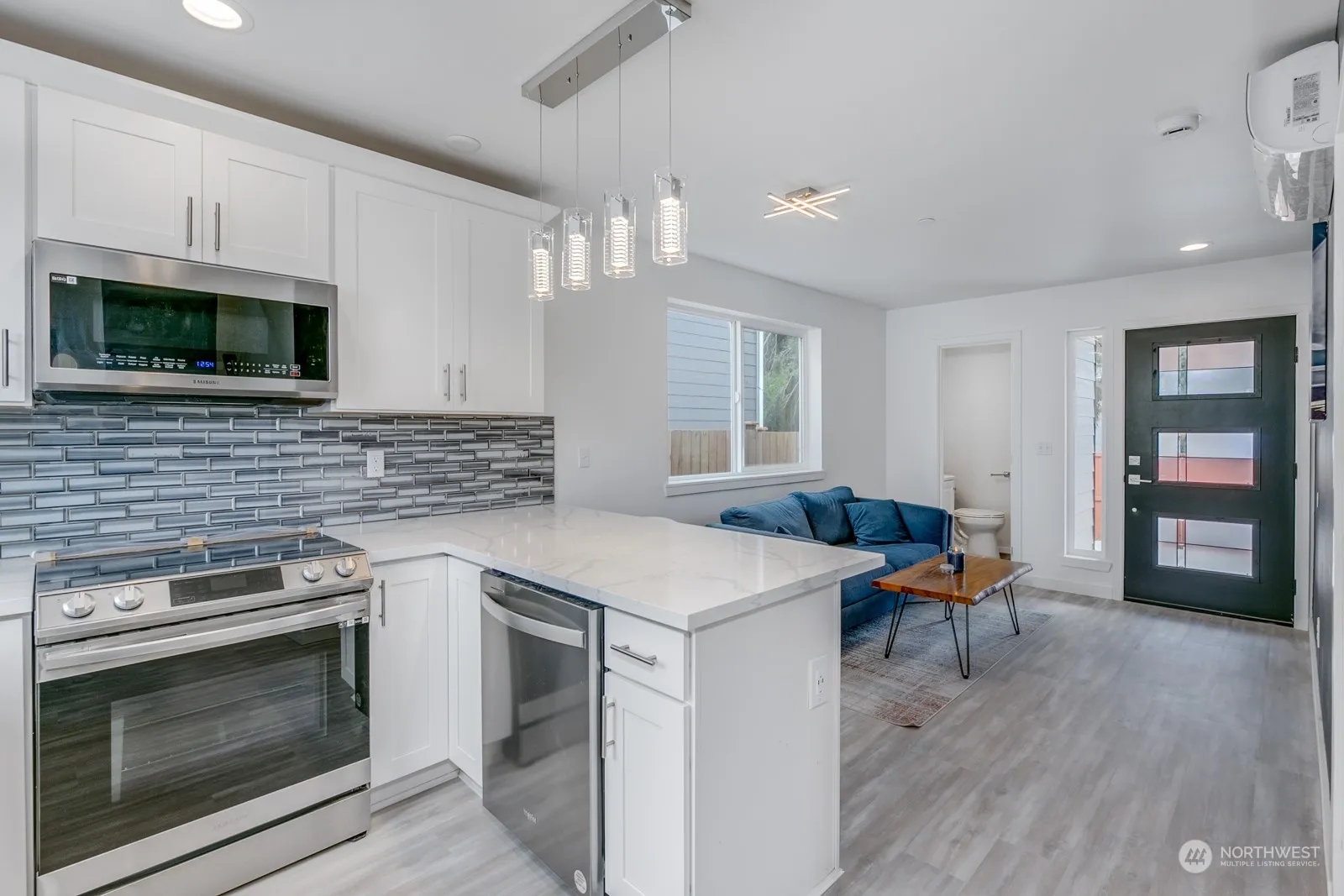 Beautiful new construction in such a convenient location! The main floor living room is open to the kitchen, perfect for cozy times at home. A half bath and storage pantry complete the area. Upstairs you’ll find a bedroom and bath, along with the washer and dryer for your convenience. The Primary bedrooms is en-suite, complete with a full bath and walk-in closet! The garage features and electric car charging outlet. A small. low maintenance yard for your bbq or patio furniture. Located right across from Chelsea Park and only steps away from the bus line on Ambaum, this house is situated beautifully for a commuter! Easygoing HOA. Rentals and pets allowed.