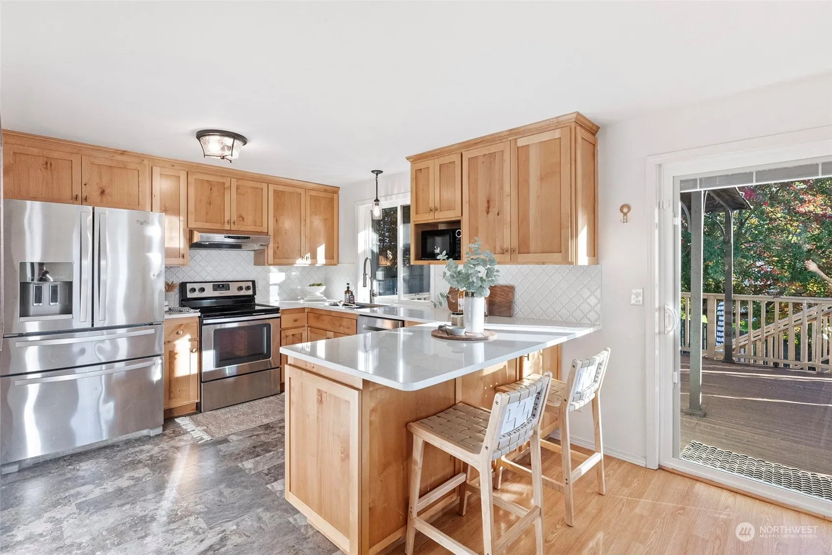 Welcome to this beautifully updated 3-bedroom home in the highly desirable Town of Steilacoom! This move-in-ready gem is just minutes from the stunning Puget Sound and local beaches, offering the perfect blend of small-town charm and natural beauty. Upstairs, you’ll find a light-filled living area with large windows, a cozy gas fireplace, and new carpets and paint in all bedrooms. The kitchen boasts custom-made cabinets, quartz countertops, stainless steel appliances, and opens to a newly updated Trex deck, and large fully fenced backyard w/shed. Recent upgrades include new garage doors, fence, new furnace and A/C, bathroom refresh, nook kitchen built-in, + landscaping. This home offers comfort, convenience, and charm. Don’t miss this ONE!