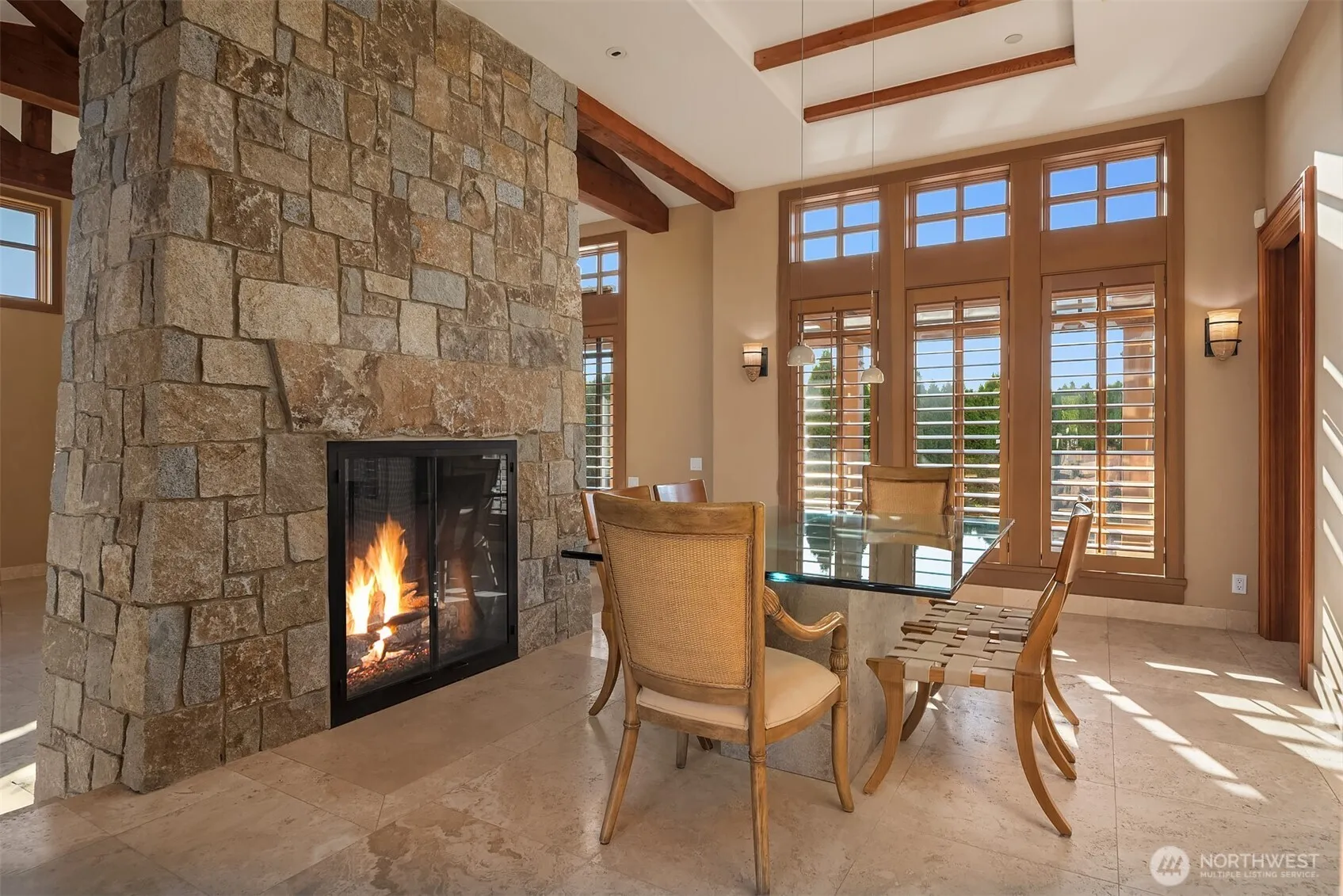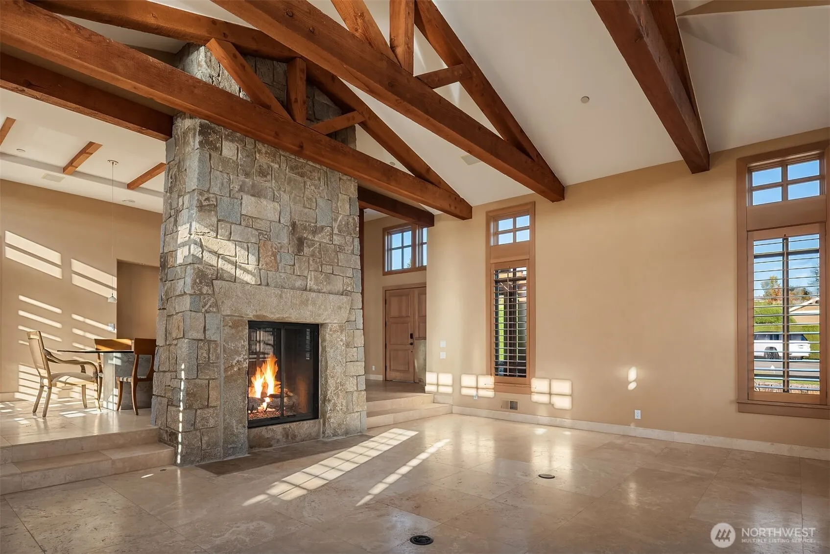 Rare single-level living and exceptional craftsmanship in Clyde Hill’s coveted Mercia neighborhood. Sited on a flat, spacious, corner lot with mature landscaping and circular drive. Soaring, lodge-like spaces with Whistler-style timbers, vaulted ceilings and stone fireplaces. Fabulous floor plan for entertaining including generous patio off the main living areas with French doors for easy indoor/outdoor flow. 4 bedrooms plus office with handsome built-ins and fireplace, 3.5 baths and a 3-car garage. One of the most desirable neighborhoods on the Eastside just minutes away from the world-class amenities of Downtown Bellevue.