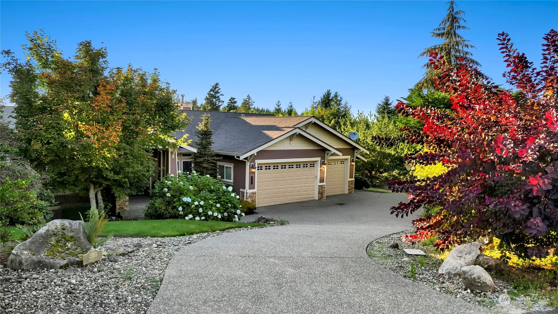 Come home to this custom-built classic craftsman located in the exclusive White Horse golf community! Enjoy main floor living with cozy den, private office, gourmet kitchen, and spacious primary suite featuring vaulted ceilings, balcony access and a stunning spa-inspired 5 piece bath. Downstairs boasts a generous living area with kitchenette, 2 bedrooms, and guest bath. Ultimate PNW living with a large main floor balcony, covered porches, masterfully designed park-like grounds, mountain and sunset views. Cherry wood floors, custom cabinetry, granite countertops, wine storage, and main floor laundry. Multiple walk-in closets, dedicated storage room, and attached garden shed. Country living with easy city access via the Seattle fast ferry.