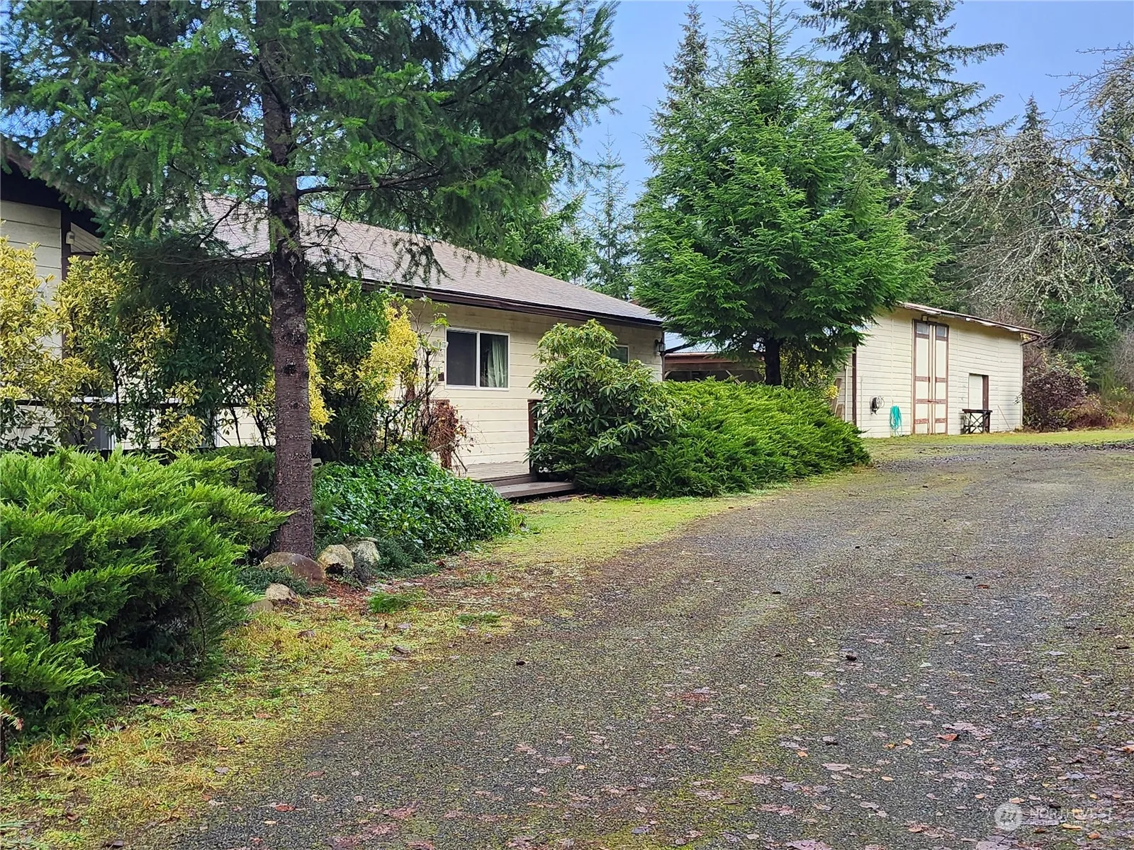 Very nice 2410 Square foot single level home. Mountain view. Three large bedrooms, two and a half baths. Large kitchen and two separate dining areas. Murphey beds in two bedrooms. Property is a secluded, gently sloping five acres with garden area and established fruit trees. Large garage/workshop with a tall enough door for an RV. Close Schools and Belfair and Allyn.