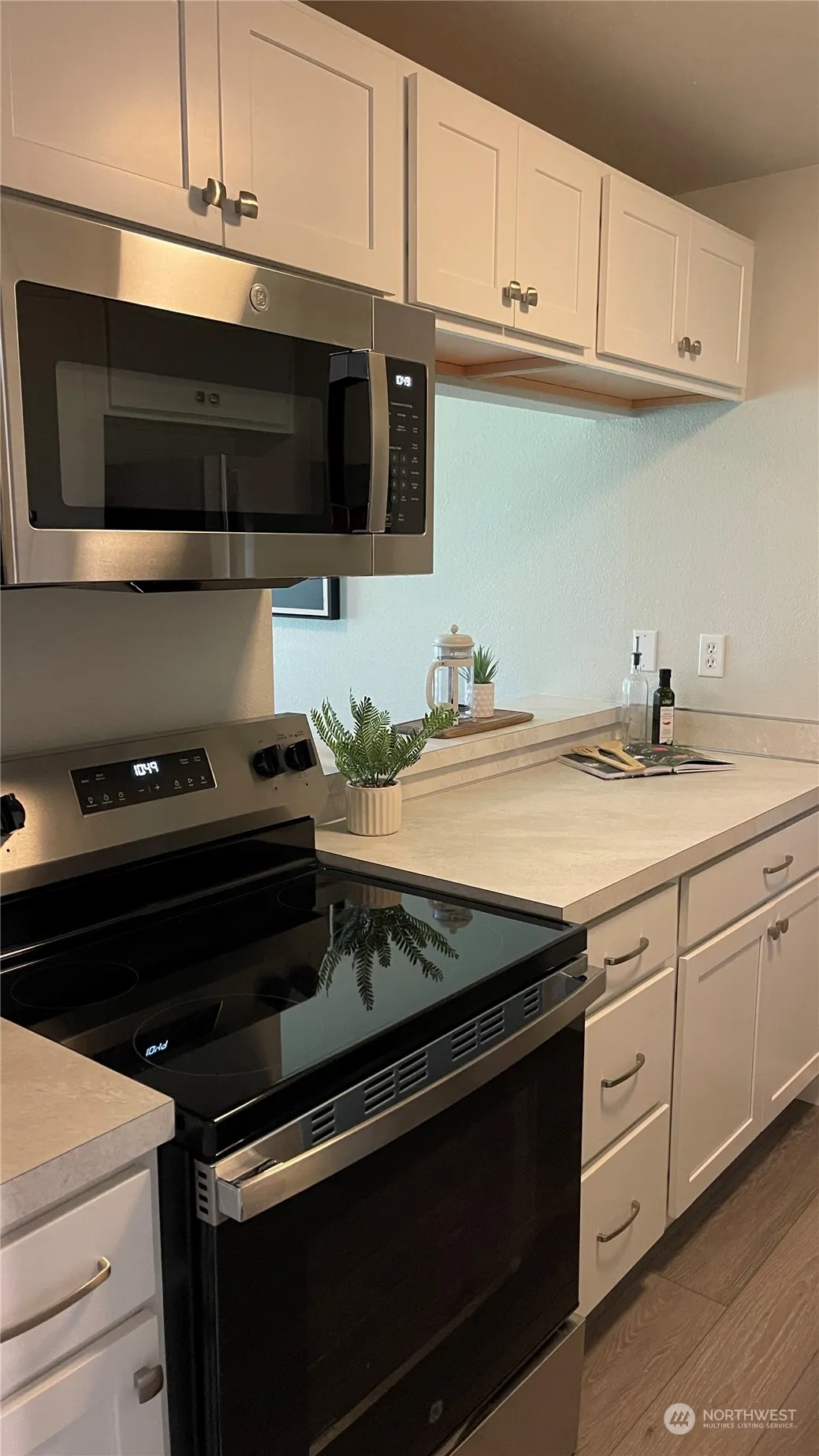 Welcome Home to this completely remodeled 2-bed 1-bath, top floor, end unit. This home offers exceptional value & charm while featuring all new kitchen cabinets, countertops, sink, LVP flooring throughout, fridge, dishwasher, stove, microwave, washer & dryer, hot water heater, forced air heaters, bath sinks, bath cabinets, countertops, tub, & toilet. A 4’X8′ storage unit, 1 covered & 1 uncovered designated parking spaces. Come and be a part of Kobuk’s small 16-unit community where you will experience low maintenance living while being close to shopping centers; Costco, Fred Meyer * Schools and I-5. Move-in ready & yours to enjoy! Also listed for rent: 2310992. **ATTN INVESTORS; opportunity to own both end units; lower unit MLS #2296919.