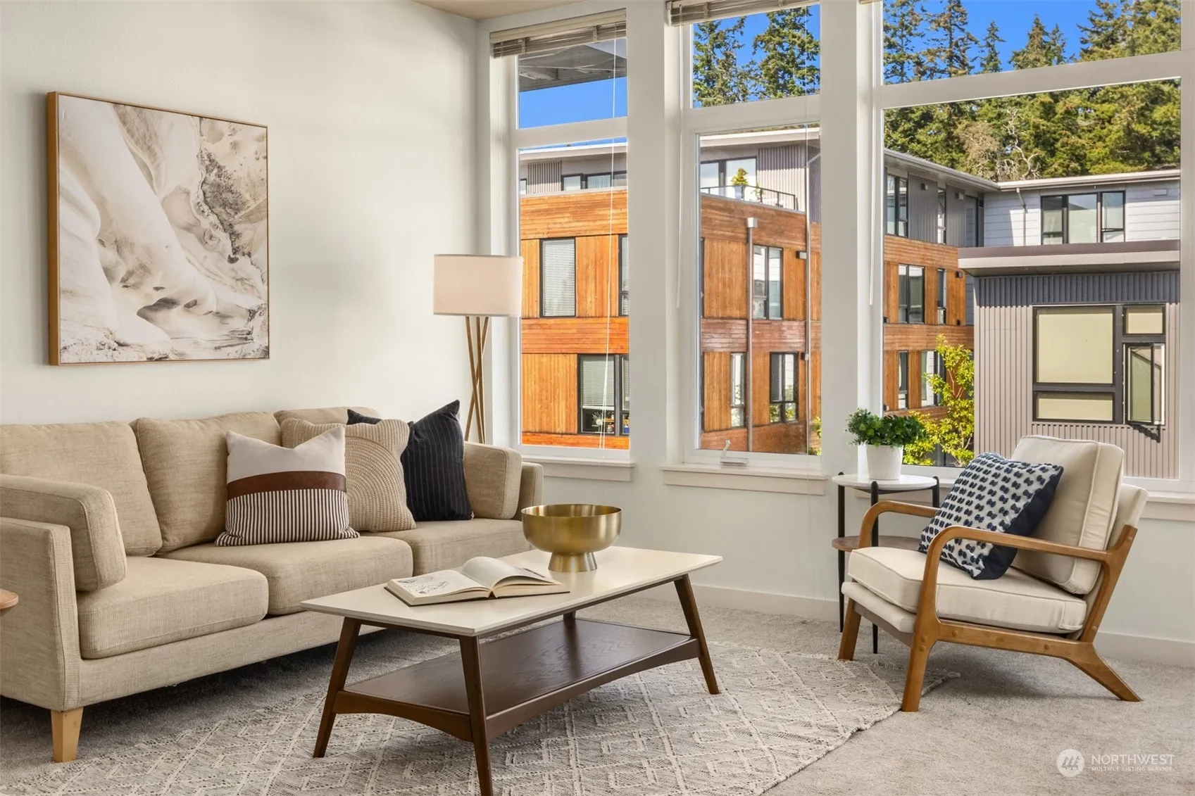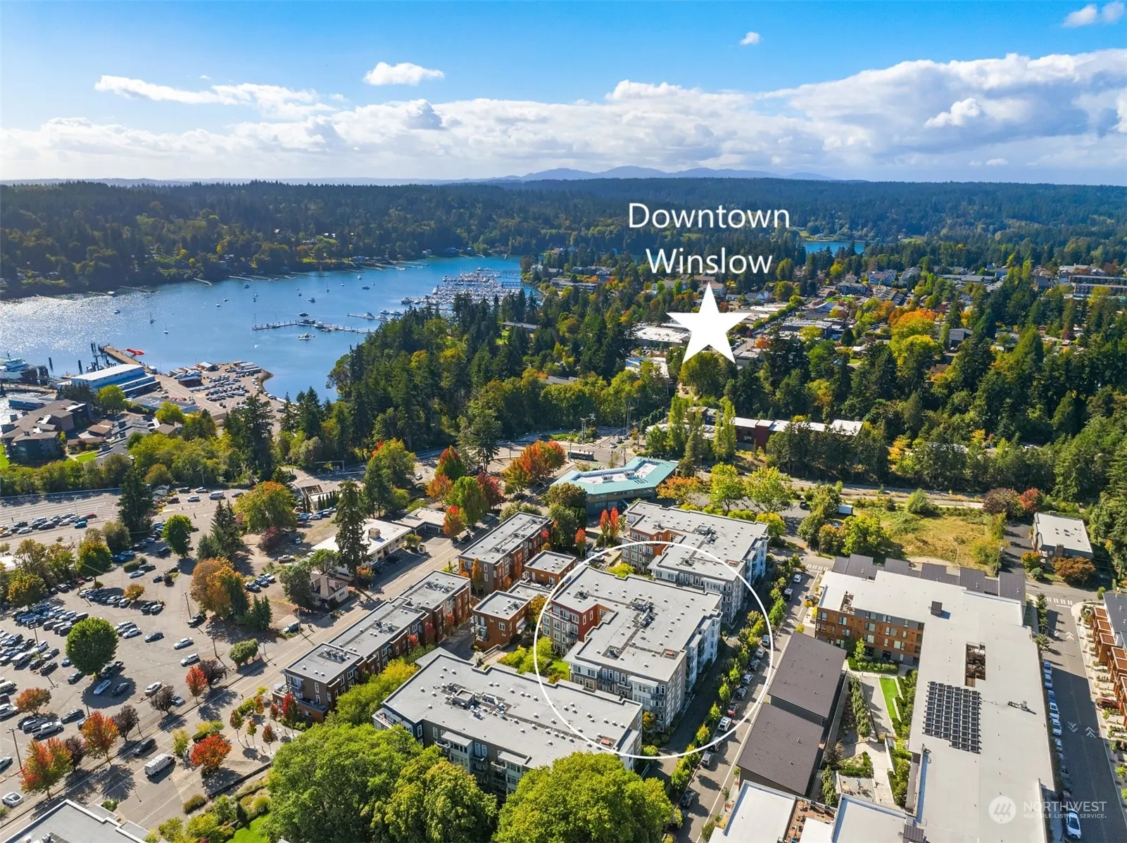 Light and bright top-floor condominium home in the heart of Downtown Winslow. Easy access to local shops, restaurants, parks and the Seattle Ferry. Open floor plan with roomy kitchen and stainless steel appliances, spacious living room and dining area plus a handy den/office space or guest room. Primary bedroom has a dedicated bathroom and walk-in closet. This is the desirable floor plan with the convenient guest half bath and it has the rare light wood cabinetry too. Handy in-unit washer/dryer and good storage space throughout. Nice balcony off of the living space with an open territorial outlook. This sweet top-floor unit is a delight.