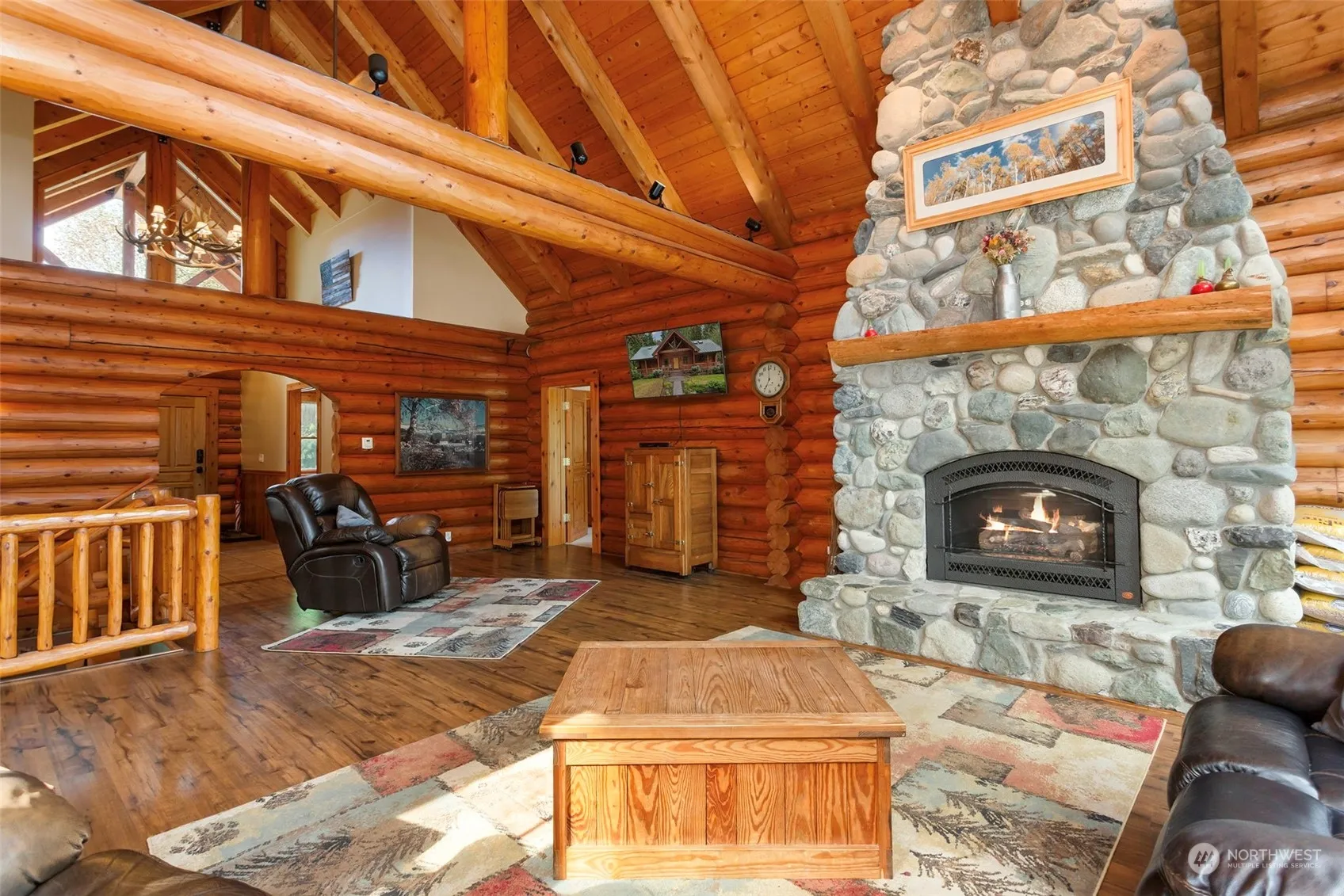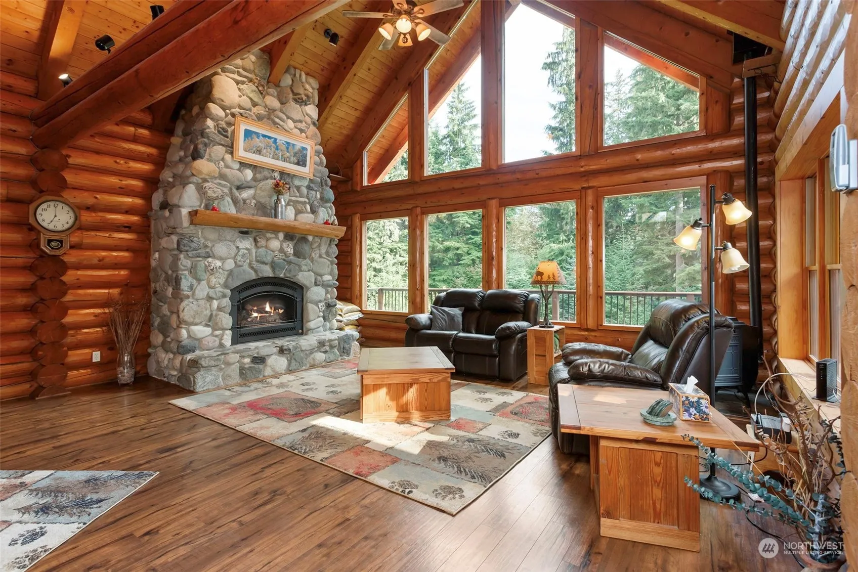 Stunning Log Home on secluded 5 Acres with almost 300′ of accessible Pilchuck River frontage. This Custom built 3+ BR beauty’s grand entry opens into a spacious Great Room w/vaulted ceiling & stunning river rock fireplace, large Kitchen & Dining area which opens onto the expansive deck. Spacious Master Suite features vaulted ceiling, bathroom w/huge shower & soaking tub, + private access to the deck. Lower floor features 2 BR + Office/BR & huge Family room w/fireplace & doors out to the beautiful Flagstone patio, full Bath, & mechanical room & tons of storage. The 1600+ SF RV Garage includes 12′ & 13’6″ doors & big shop area. Large private yard, with well-maintained trails leading to the river & picnic area. Pre-inspected and ready for you!