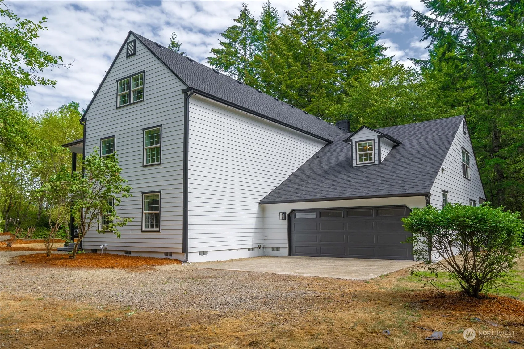 Do you dream of land, space and a big, beautiful house? Welcome home to this fully restored custom-built colonial on 1.8 acres. Drive down a quiet dirt road to a massive 3 story estate w/dual full-length decks (5 bedrooms if you add closets upstairs), and a 3rd deck off the kitchen. The main floor includes a large home office, living and dining rooms, and new kitchen complete w/ quartz countertops, stainless-steel appliances and under cabinet lighting. Upstairs your primary bedroom suite features 3 walk-in closets, a full 5-piece bath, a private living room with wet bar and fireplace, and private staircase. New roof, exterior paint, new lighting and more. 30 min to Tacoma, 20 min to Gig Harbor, and waterfront access across the street!