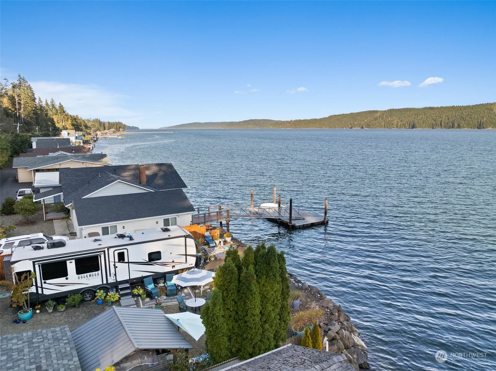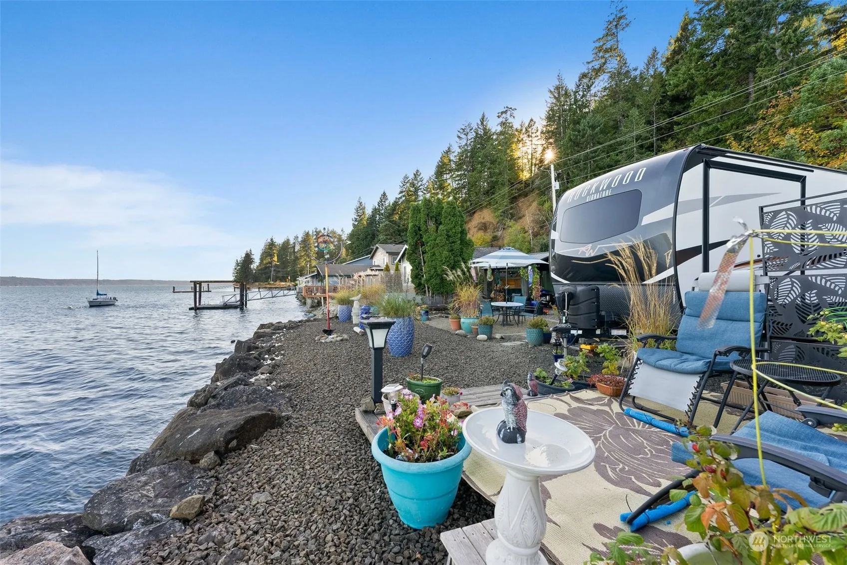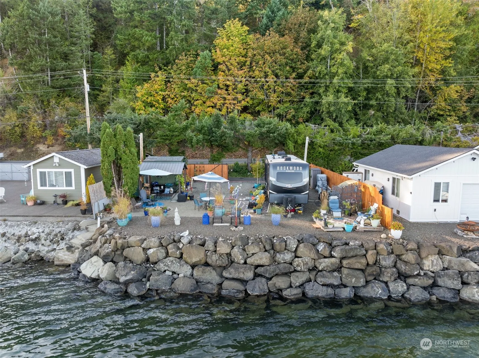 The perfect waterfront oasis, offering tideland rights w/shellfish beds, shrimping & more, nestled off a private drive in the charming town of Hoodsport. Indulge in the beauty the NW has to offer overlooking the Hood Canal on this 60’x55′ lot. Septic w/RV hookup, water & power is connected, ready for you to make this place your own. The RV can be purchased on a seperate ticket or removed for the build of your dream home or tiny home. A weekend getaway, perfect for short term rental or full time living. Lot includes pergola w/prep station, shed w/electricity, microwave, fridge/freezer & plenty of storage, newer Cedar fence w/20′ rolling gate. Seconds from Glen-ayre Resort for added guest accommodation. Must be accompanied by a licensed agent