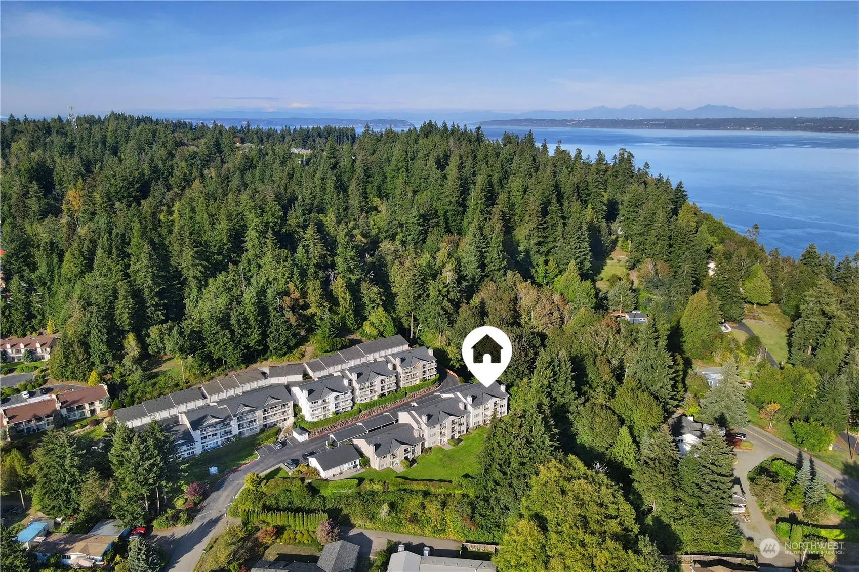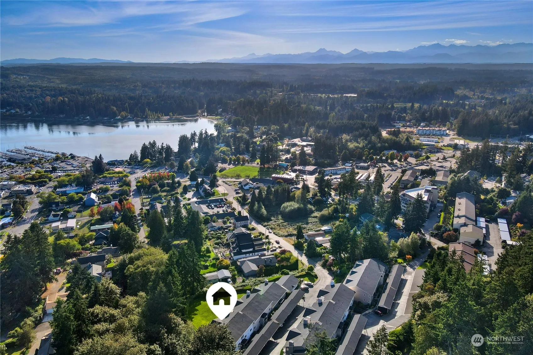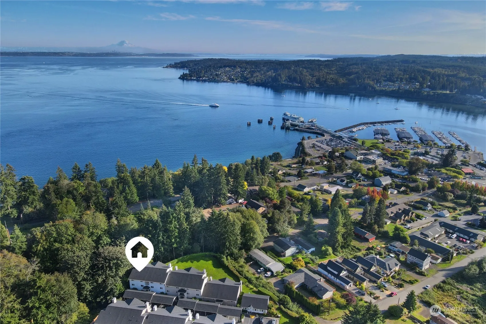 In the heart of Kingston, welcome to this immaculate and spacious 1160 sq ft, 3 bed, 2 bath, corner condo. Minutes to the ferry, great restaurants, shopping, parks, marina, and beach. Open floor plan boasts cherry engineered hardwood flooring, granite counters, tiled flooring, cozy propane gas fireplace, and seated counter space/eating bar. Territorial views look out over sprawling lawns, wooded open space, and mountain views from living room and primary bedroom deck spaces. One of the bedrooms functions can also function as a home office. Condo includes both a carport and garage parking spots.