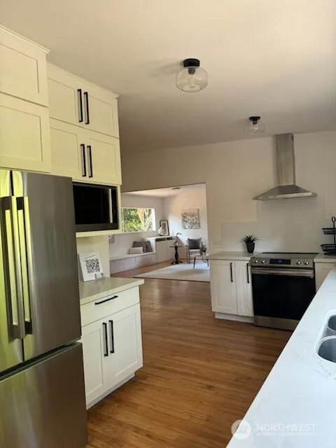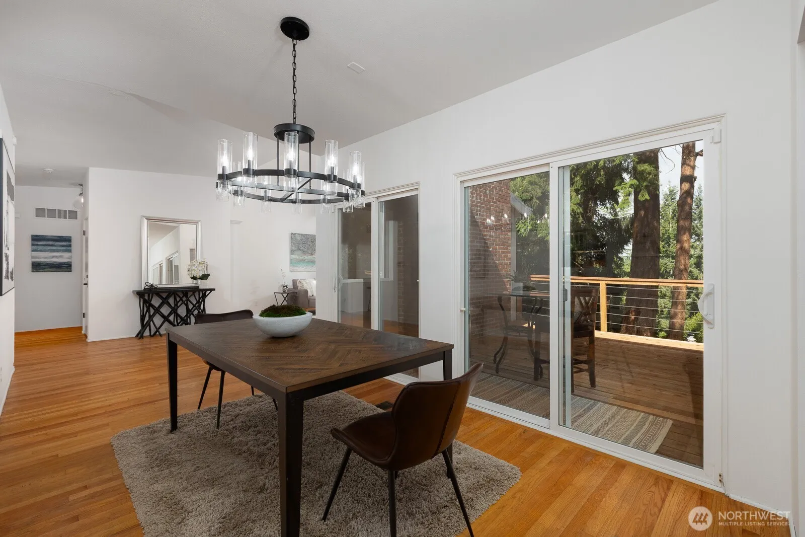 MUST SEE this Stunning Mid-Century Modern Gem. This thoughtfully updated MCM home blends timeless architecture with modern comforts. Newly remodeled kitchen features sleek quartz counters, SS appliances & a clean contemporary design. Solid hardwood floors flow throughout main level w/updated spacious bath. A striking MCM Fireplace anchors the main-floor living rm w/huge windows & natural light. Adjacent dining & family rooms have access to spacious deck—ideal for entertaining or relaxing. Downstairs is 3rd bdrm, spacious 3/4 bath & large rec room w/FP ideal for cozy evenings. Brand New Roof. Conveniently located near frwys, shopping, JBLM, Gravelly Lake, quick access to American Lake public boat launch, local parks & Lakewold Gardens
