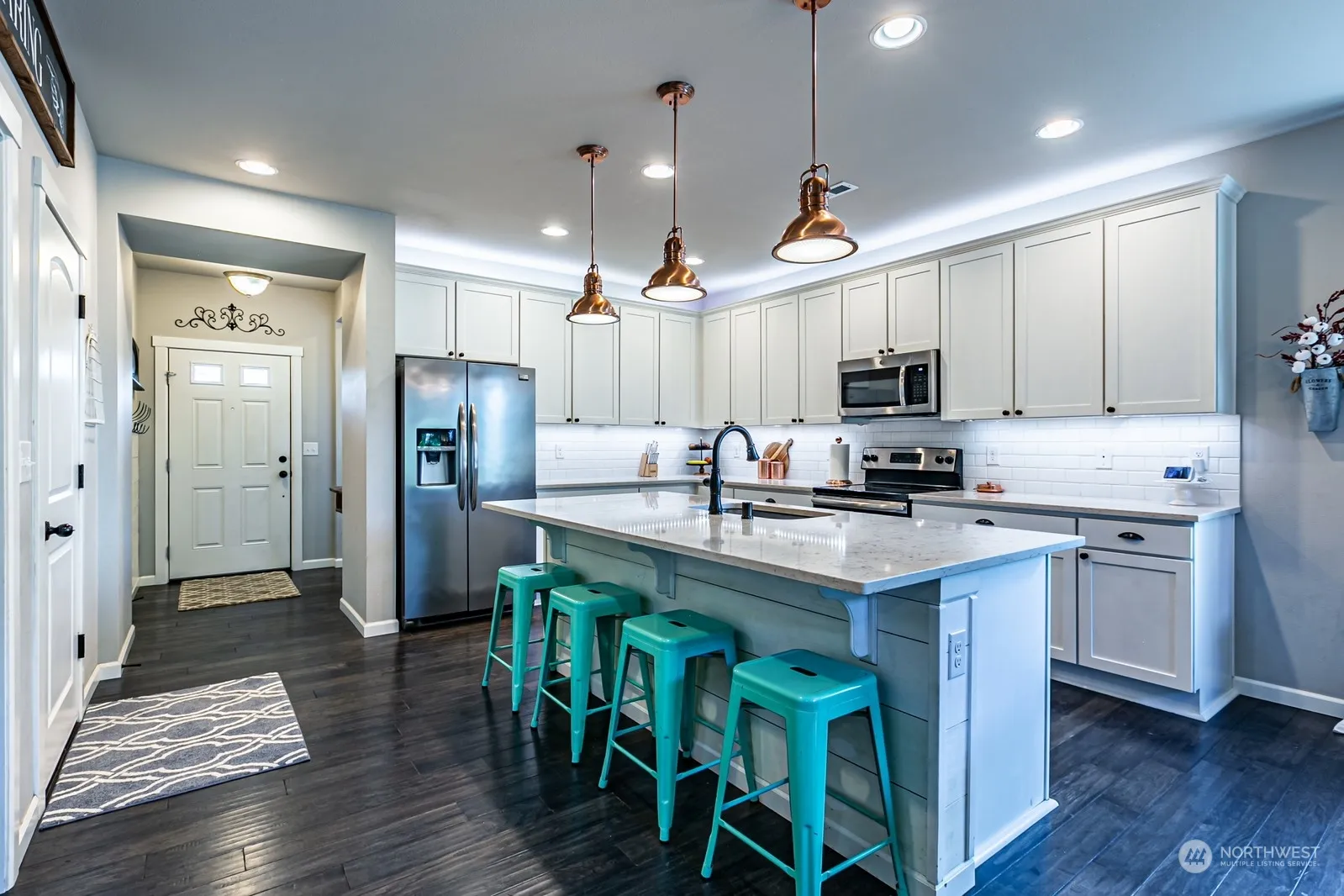 Beautiful Richmond American home in the River’s Edge community. The Ivy floor plan with open concept, vaulted ceilings, ample storage and walk in closets in every bedroom. Light & bright kitchen w/quartz counters & shaker cabinets. Enjoy entertaining in your fully fenced back yard with a large, covered patio. In addition to the primary suite & two spacious bedrooms upstairs this home offers an impressive mother-in-law suite on the main floor with own exterior entrance. Including a living room, bedroom, walk-in closet, 3/4 bath, washer/dryer hook up, kitchenette with room for a mini fridge & dishwasher. AC, generator hookup, great location! Near Foothills trail, Carbon River & all amenities Orting has to offer!