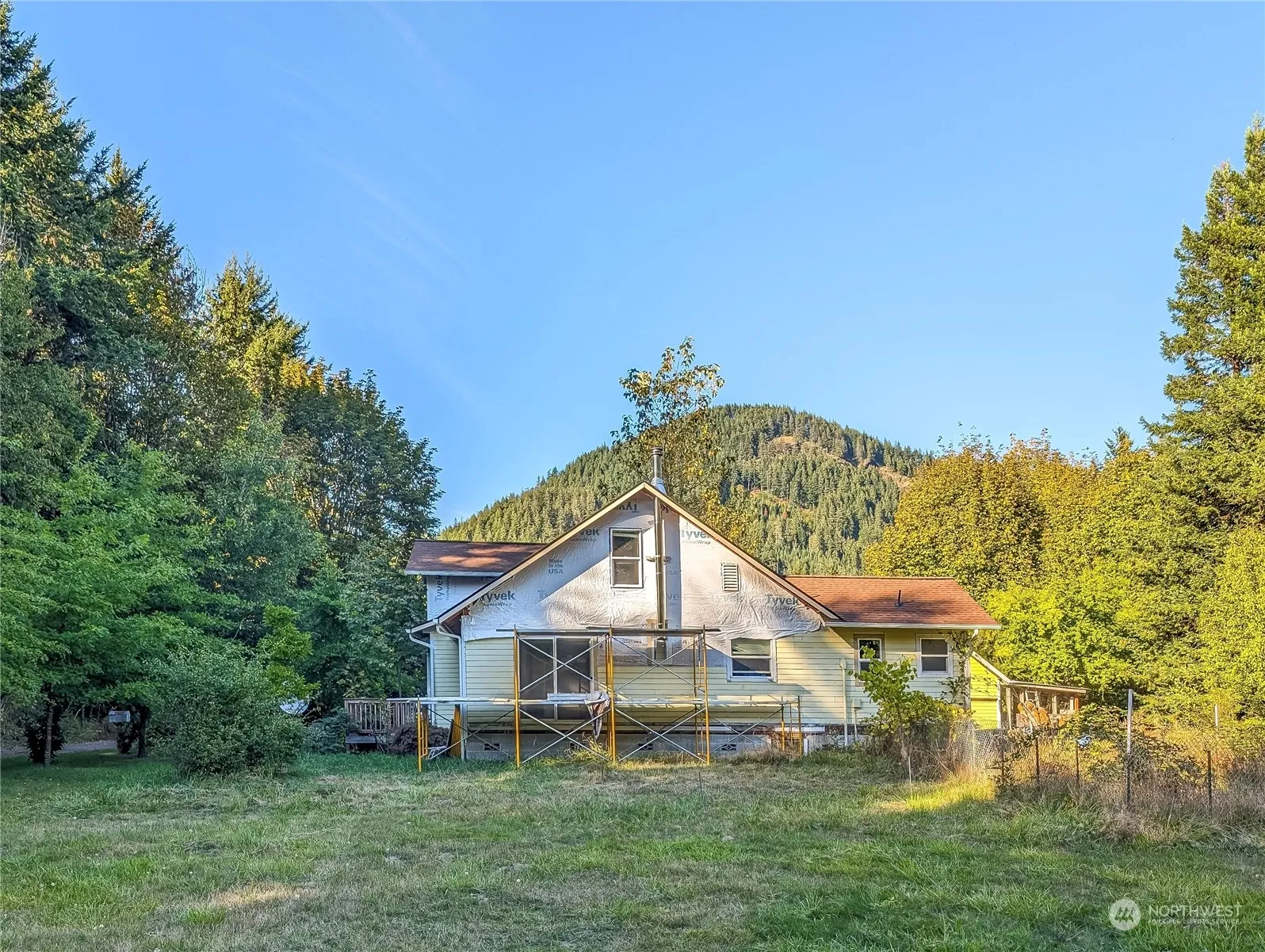 Beautiful private location on 8+ acres. Property is priced to move! Bring your ideas, make this place your own and have instant equity. Home has been raised as it is in a floodplain, and is mid-remodel. Interior will be your blank slate. Some additional building materials available onsite. Features include large garage/shop, fruit trees, garden space, and territorial views. Perfect for homesteading. Located in the wildlife-rich recreation hub of the Cowlitz River Valley, near Mount Rainier National Park, the Gifford Pinchot National Forest, White Pass Ski Area and more! No drive-bys please.