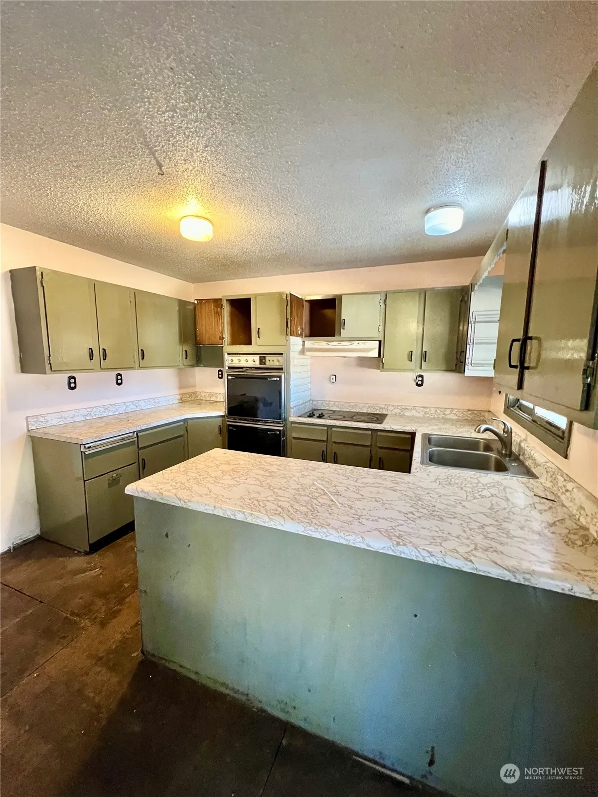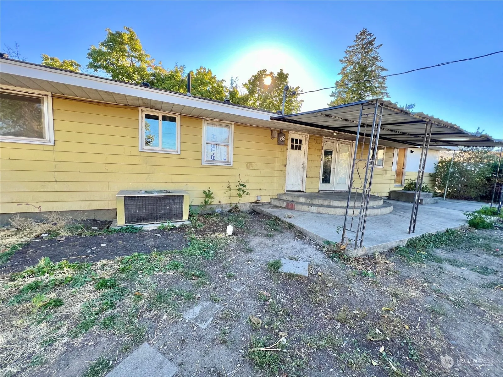 Omak – Potential to customize this 1584+ sqft 3 bedroom/1.75 bath home with 768sqft detached 2+ car garage. Great bones! Large living room, additional family room w/wood burning fireplace, kitchen with breakfast bar, – all appliances stay, dining room w/sliders to covered back patio, laundry room/utility room leading to three-quarter bath. Finished basement/rec room. City utilities. CASH ONLY. $120,000 MLS-2296068/H-3607