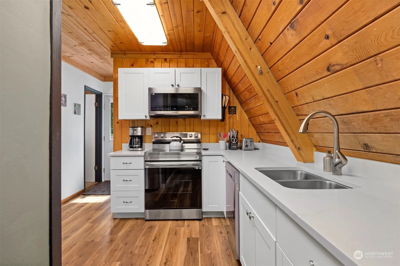 This stunning Glacier A-frame is the ultimate retreat for outdoor enthusiasts & cozy cabin lovers alike. Fully updated & meticulously maintained, the cabin boasts a welcoming living space with a charming fireplace, perfect for relaxing after a day of skiing, hiking, or exploring the nearby trails. A modern kitchen with stainless steel appliances & eating area. 3 spacious bedrooms offers tranquil views. On the back deck where you’ll find yourself immersed in serene forest surroundings. The cabin features a new roof, windows, and siding, ensuring long-term durability and peace of mind. Perfect for a full-time residence, a weekend getaway, or a high-demand vacation rental! Truly a perfect blend of rustic charm and modern convenience!