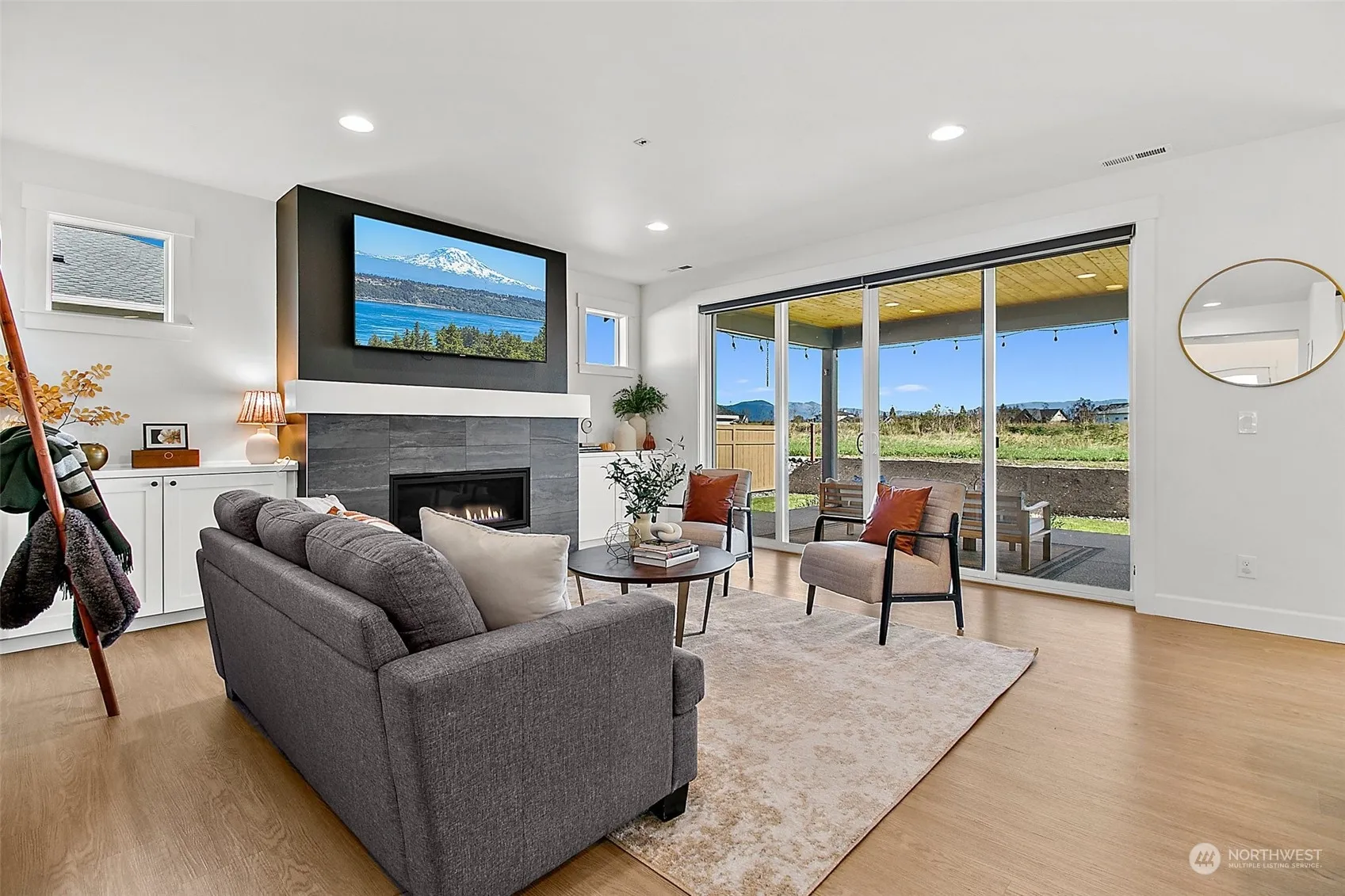 Check out this rare Mt Rainier view home in the sought after Elk Run community. The Everett plan offers 3,358 sq ft of open-concept living including 5 bed, 3.5 bath, office, dining room and bonus room. The chef’s kitchen includes quartz waterfall countertops, double ovens and commercial size fridge. The main floor includes a junior suite with a full bath. Upstairs, the primary suite features his-and-hers walk-in closets and a 5-piece bath, 3 additional bedrooms and a generous bonus room. Two oversized sliders on the main level lead to an extended indoor/outdoor covered living space with stunning mountain views. The property has a full sprinkler system for front & backyard, including RV parking and outdoor lights. Don’t miss this rare find!