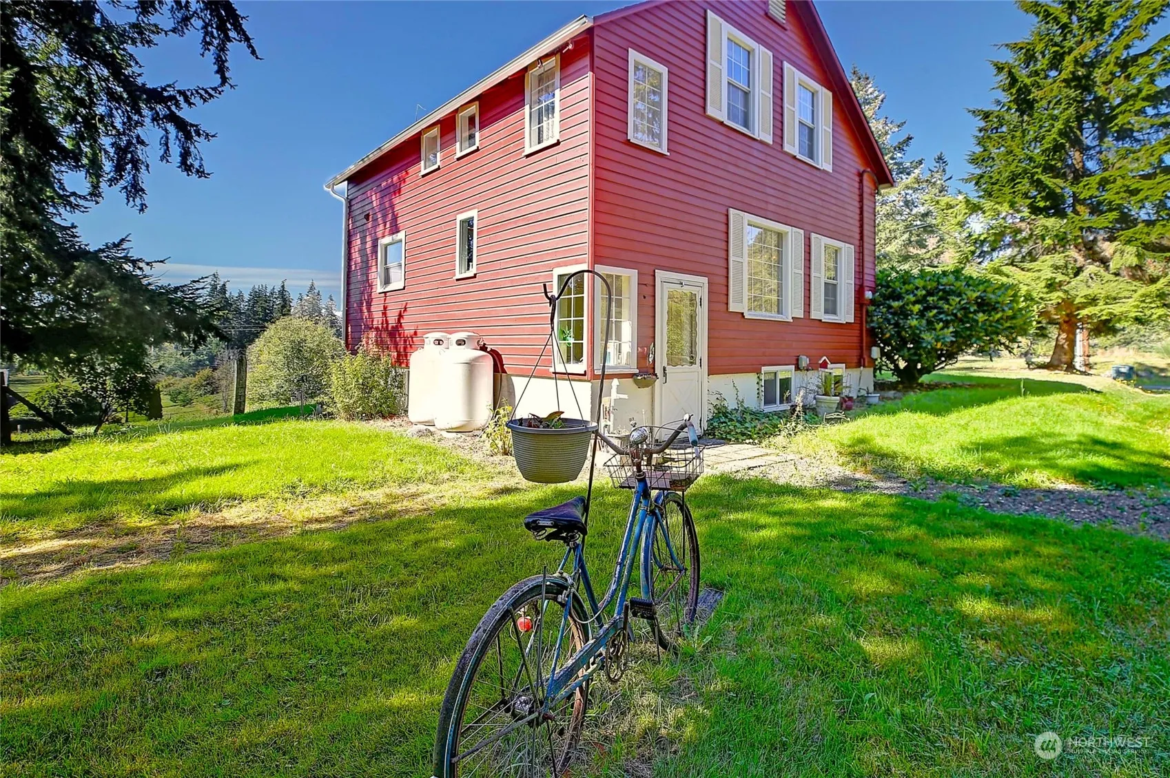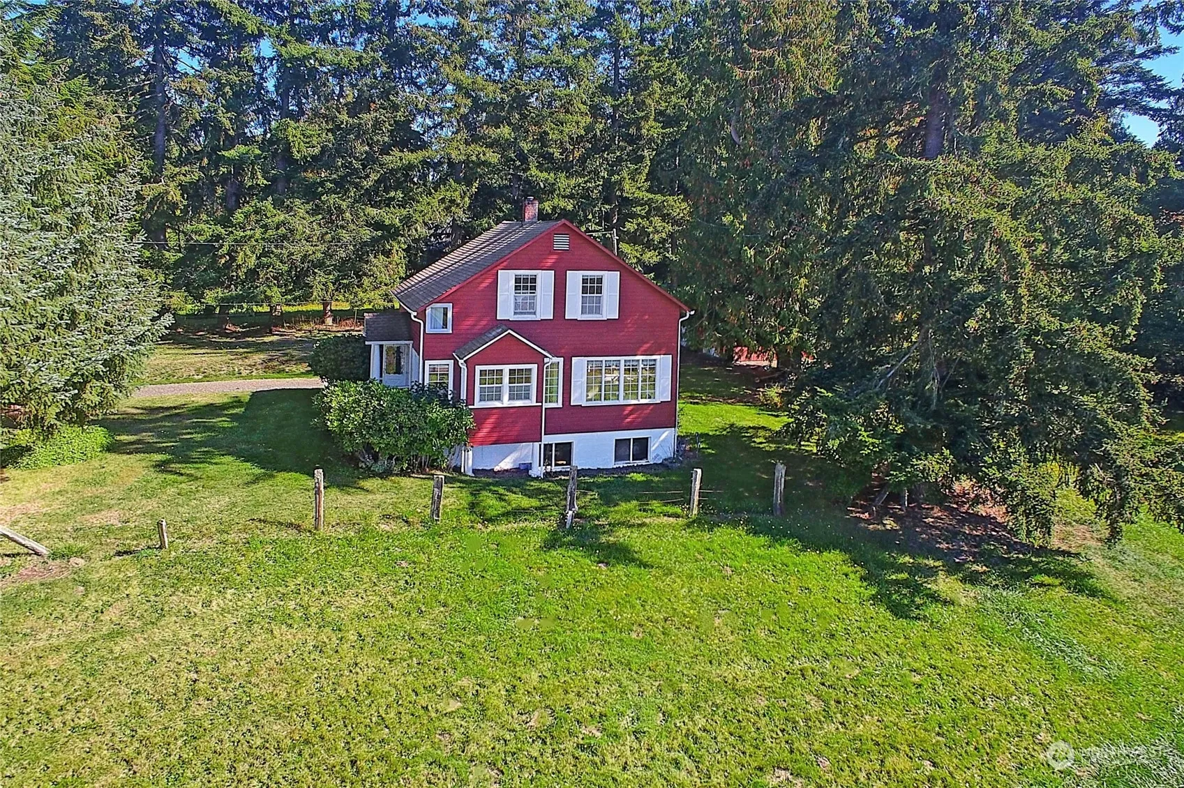 Fall in love with this idyllic 1930s home, situated atop shy 4 1/2 acres of rolling pastoral and wooded land with expansive, west facing territorial views. 2-story, 3 bedrooms, 1 bath, large daylight basement, and 864 sq ft detached garage & shop. Big and bright country kitchen with ample space for cooking and eating. Double pane windows fill natural light throughout the living and dining room area. Free-standing gas fireplace can heat the main level year round. Roof under 10yrs. Newer exterior paint/stain. Great bones! Trail in back leads to seasonal creek and untouched nature. Lots of potential in DADU, equestrian, hangar/studio…bring your vision! Minutes from beach, parks, lakes, shopping, and under an hour to Seattle. WELCOME HOME!