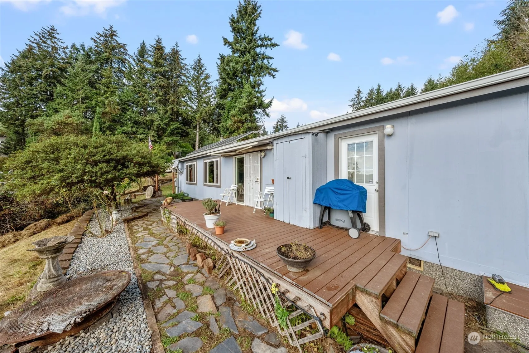 Welcome home to the Beards Cove community. This lovingly maintained home offers serene living W/ an expansive territorial view, including a partial water view of Hood Canal & glimpses of Mt. Rainier. The upgraded kitchen features travertine stone countertops, & the master bath boasts a slate walk-in shower & granite-topped vanity. Unique handcrafted light fixtures created with the seller’s artistic talents add character throughout. Enjoy the open floor plan, bonus office, 2-car deep carport, storage sheds & community pool access. Seller has installed solar panels to offset energy costs. As a BONUS seller’s ASSUMABLE VA LOAN could save you significantly on loan payments.