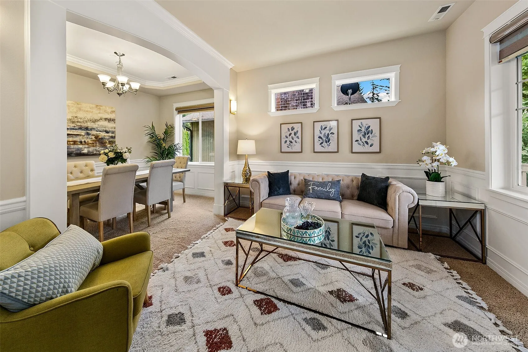 Modern & Bright 4BD + Den/Bonus in Sammamish! Light-filled home with elegant wainscoting in the entry, living, and formal dining. Cozy gas fireplace warms the family room. Updated kitchen features custom cabinetry, quartz counters, large island, and walk-in pantry. Sunlit breakfast nook opens to a flat, fully fenced backyard with paver patio—perfect for entertaining. Upstairs offers 4 spacious bedrooms plus bonus. Luxurious primary suite with 5-piece bath and walk-in closet. Parks & trails nearby. Excellent schools!