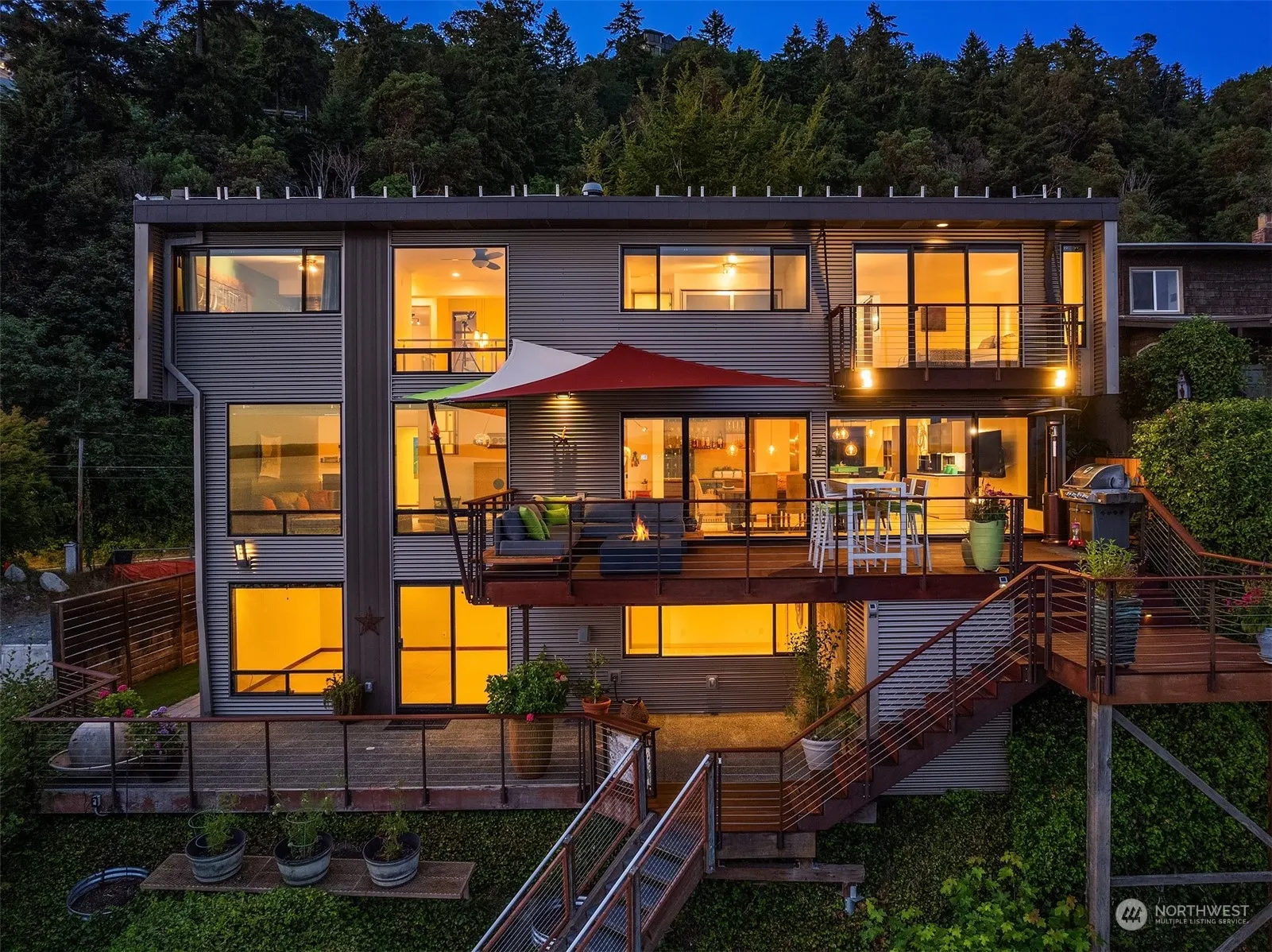 Three Tree Point Beach Oasis. Welcome to Puget Sound Lifestyle w/this fun haven truly designed for entertaining. Blending contemporary lines to whimsical elements, the home overlooks dramatic Pacific Northwest scenes of Mt Rainier, green islands & world-sailing vessels. Private from the street, the property offers a gated entrance flowing into a lush garden reminiscent of exotic vacations. Inside, happy rooms flow into the immensity of the sky & water. Glass, metal & wood create a natural experience w/the outdoor. Among the many highlights: the chef’s kitchen w/pantry + built-in pizza over; the sizable view primary & the inviting beach w/cabana, sandy shore & buoy to anchor one’s boat. The perfect enclave mins to charming Olde Burien.