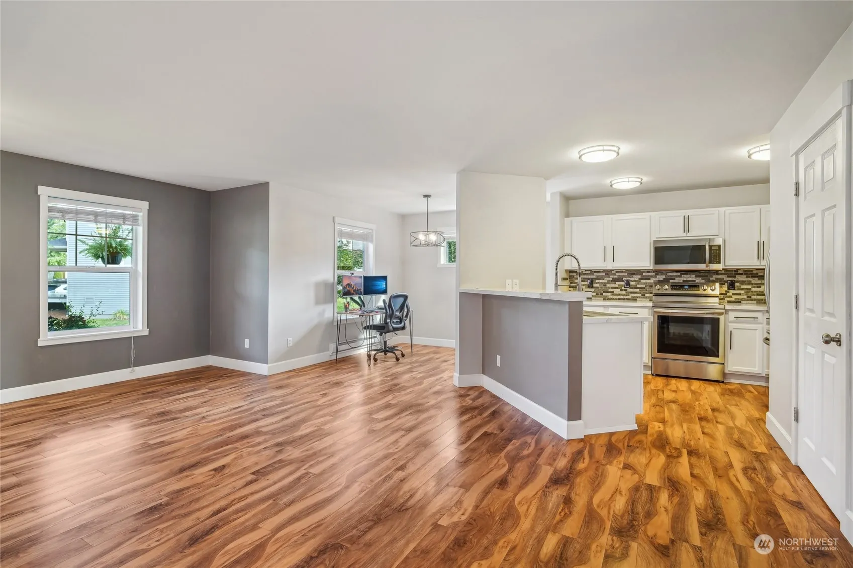 Charming standalone 2 bed, 1 bath 2-story townhome on rare cul-de-sac in highly desirable Snoqualmie Ridge. Great use of space provides comfortable living w ability to do what you like inside while having everything on the outside maintained for you. Updated kitchen, flooring and paint! Quaint Cottage Village feel to the community that is vibrant, active & social. Convenient access to I-90 for commuters & surrounded by miles of trails to walk, run, hike or bike w walking distance to comm parks, shopping and Brand-New Jeanne Hansen Community Park.