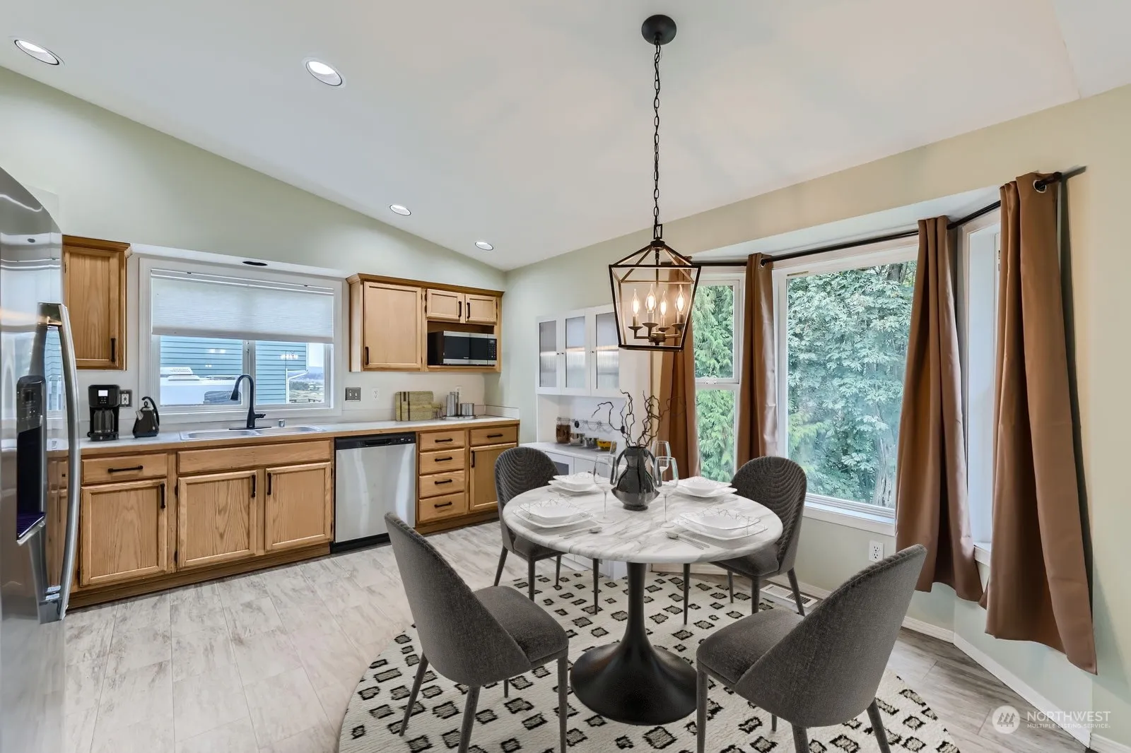 Perfect 3 Bedroom Home in Stanwood. Offers a Modern Updated Kitchen with Lots of Cabinet Storage, Relaxed Dining Area and LVP Flooring. Primary Bedroom Suite with Private Bathrm, New Fixtures, Ceiling Fans & Spacious Walk-in Closet. Welcoming Living Room with Vaulted Ceilings, Large Family Room w/ Gas Fireplace. Easy Access to a Lovely Back Yard w/ Relaxing Deck that Provides Beautiful Views of the Sunset Over the Water. Located on a 15,000 sq ft. oversized Lot that Backs up to Private Lush Green Belt. Beautifully Landscaped Front Yard. Large two Car Garage with New Doors and Storage Space, Cleaned and Move in Ready – Comes with All Appliances and More.