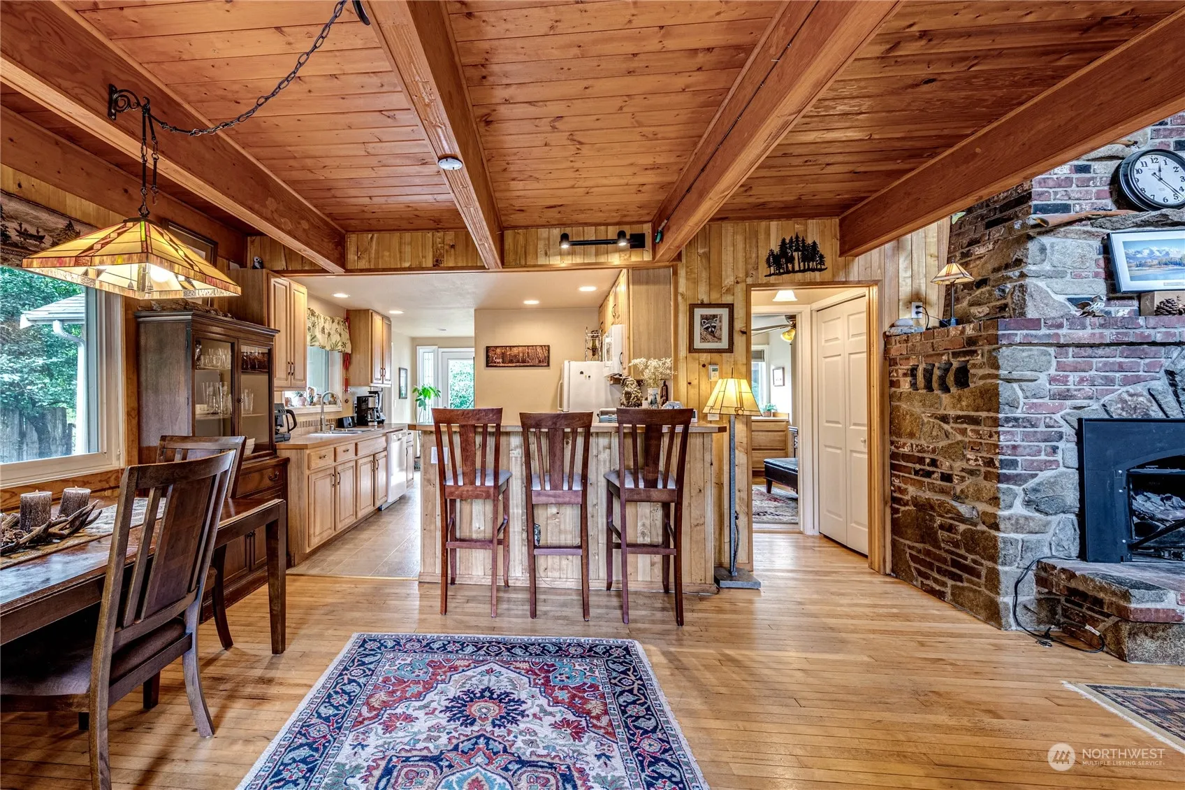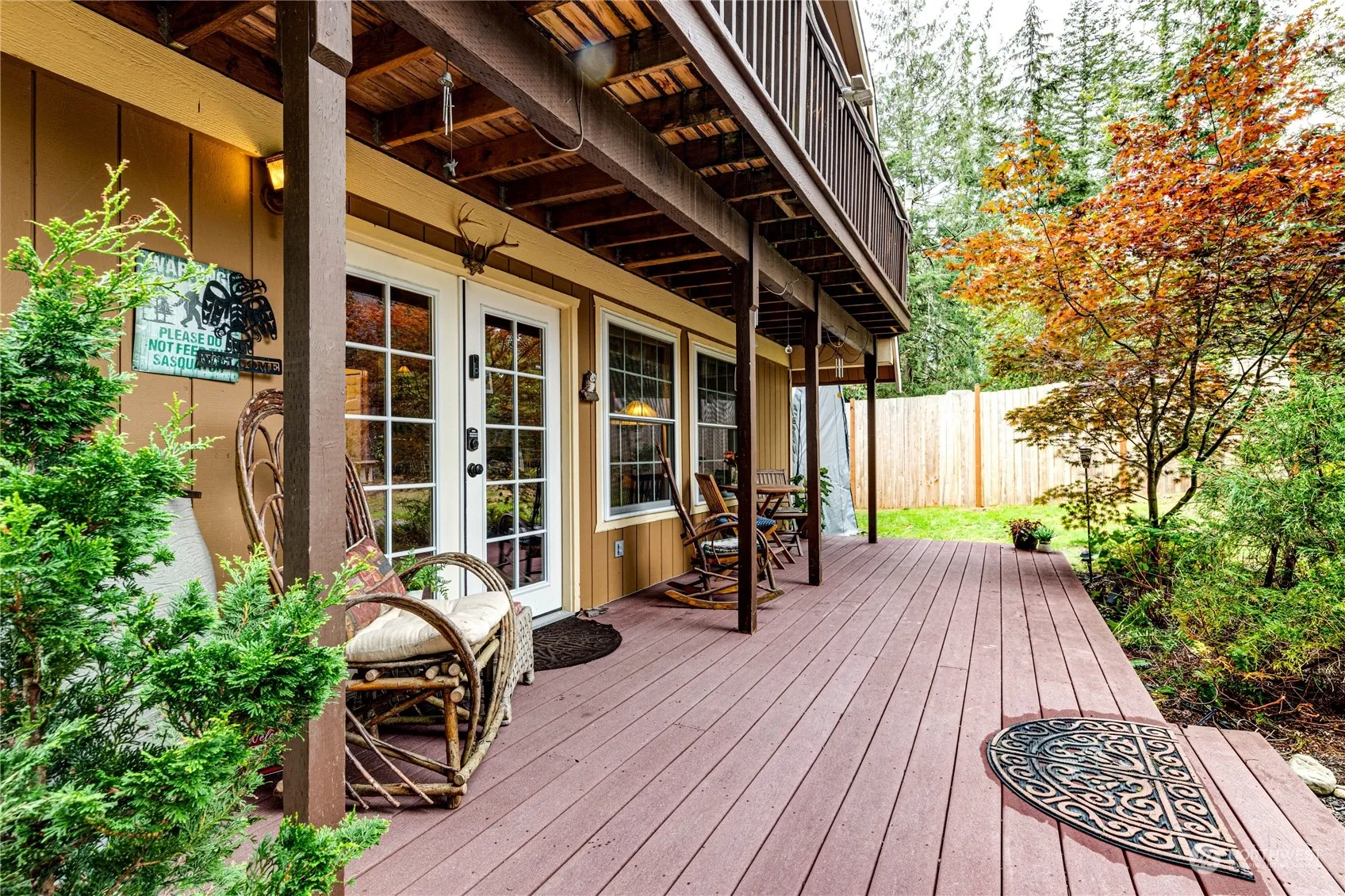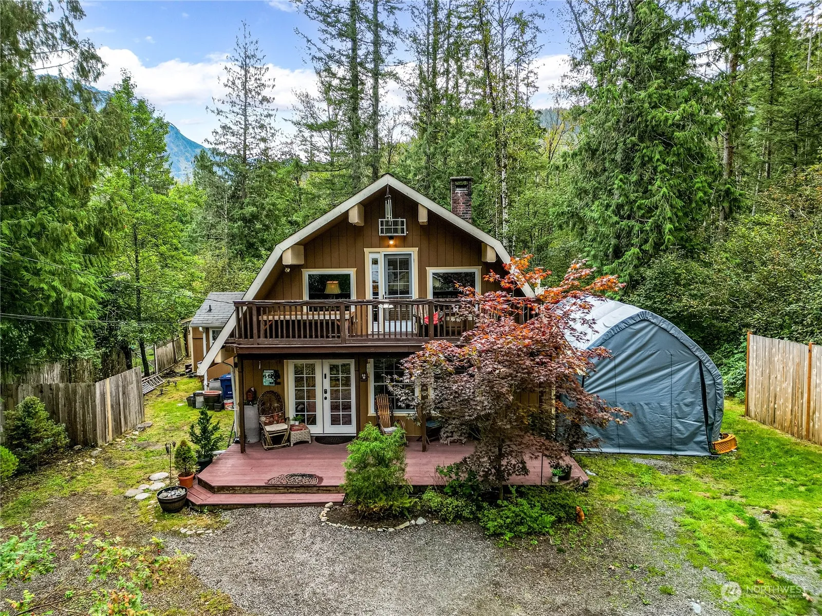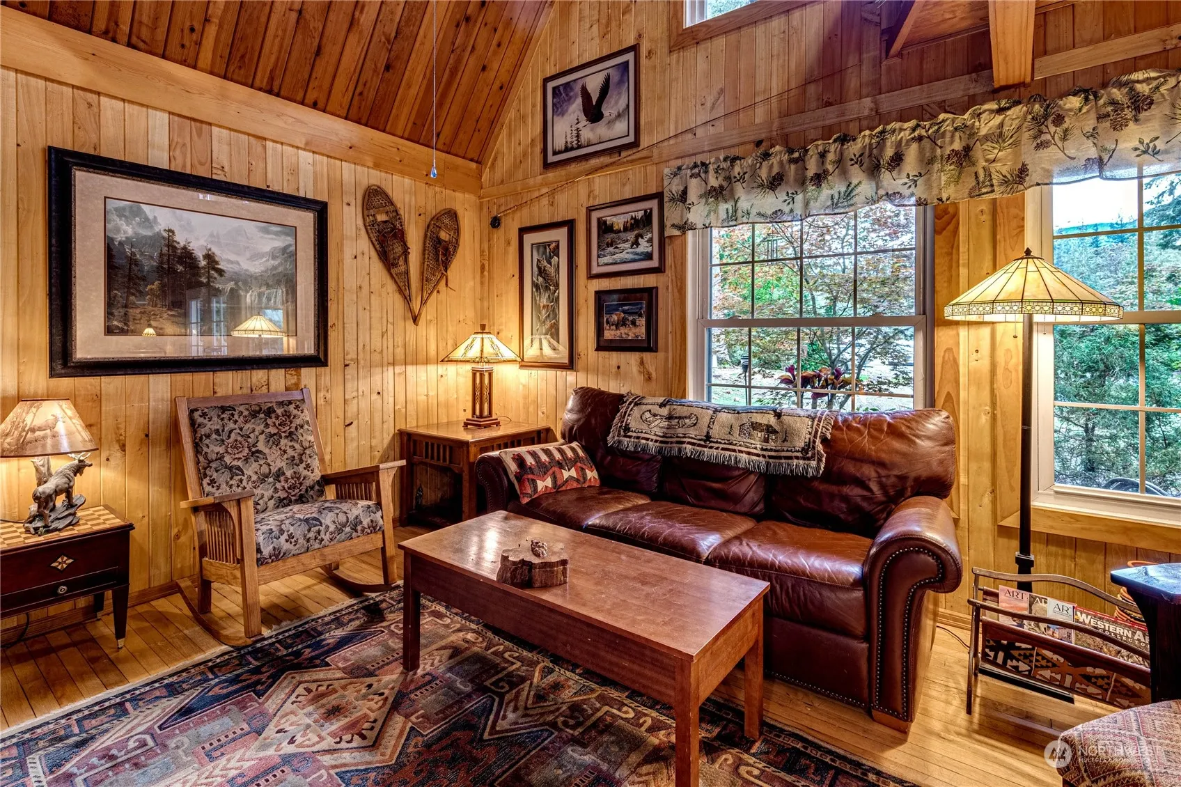 Come home to your “modern rustic” chalet or your amazing turnkey vacation rental. Front porch, 2-story gas fireplace, nature, views, gazebo, balcony, hot tub, there is so much opportunity to kick back and let your cares melt away or accommodate any number of gatherings. In addition to the open main living, dining, and kitchen area there is a generous primary bedroom, 3/4 bath and handy utility/mud room on the lower level. Huge 2nd bedroom (double beds), full bathroom, and open loft bonus area upstairs. Outbuildings make great storage and shop space. Cul-de-sac, small, local community with LOA and private beach access. Propane ON-DEMAND, tankless water heater. Pre-Inspected and Inspector recommendations currently being addressed