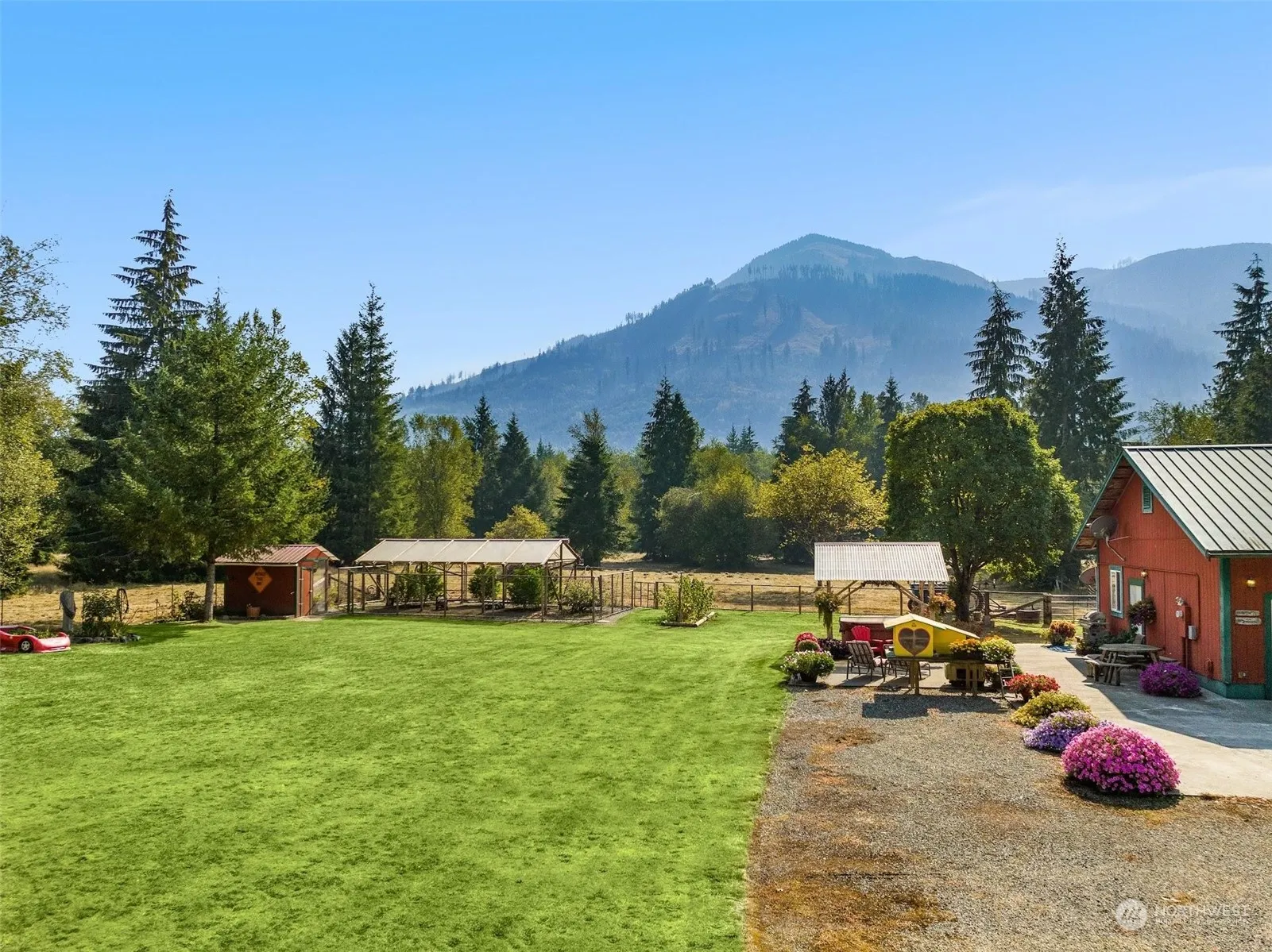 Imagine crafting your dream home amidst the serene beauty of Talc Mtn as a backdrop & majestic Mt. Baker gracing the horizon. Fully fenced, this 20ac paradise offers an ideal canvas offering both natural beauty & essential infrastructure . The 1800sf shop featuring 11ft ceilings & 3-9ft doors can serve as comfy living space during construction. Enchanting property w/meticulously crafted rock gardens, adorned by granite & cobblestone guarantee a seasonal display of color making every day a masterpiece. Multiple pastures grace the landscape & offer a tapestry of raspberries/blueberries/apple/cherry/prune & pear trees complete w/grapes. 4bed septic & 40ft domesticated well IN PLACE AND NO WATER CAPTURE SYSTEM REQ. Seize this opportunity today!
