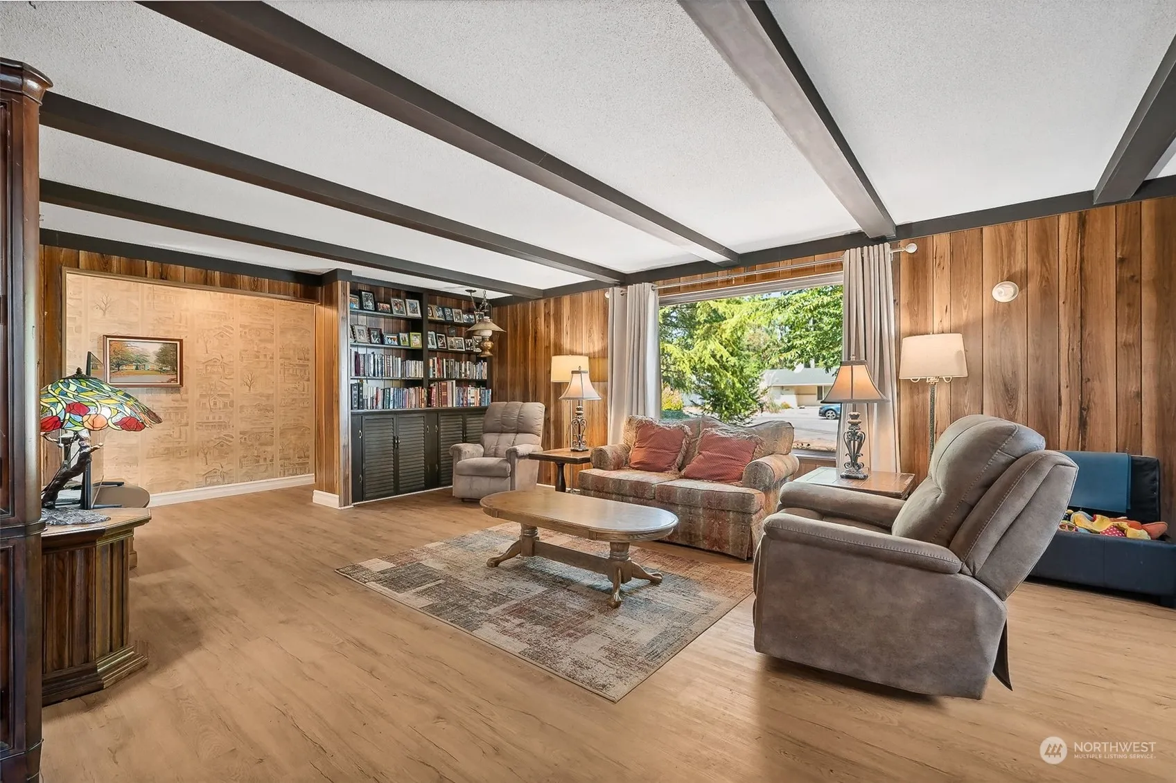 First-time on market & just up from Chamber’s Bay! 2 bedroom with private bonus room or non-conforming 3rd bedroom. Untouched architectural features many would pay to replicate & up-to-date on proactive maintenance such as 30yr roof (2015), annual HVAC servicing, newer water heater, heat pump & exterior paint. Stylish & durable LVP flooring throughout the entire home. Cozy transitional exposed beam ceilings, flanked with built-ins, floor to ceiling flagstone hearth, & vintage mirror tiles. One of few remaining streets in University Place with option to tie-in to sewer or stay on cost effective septic. Low maintenance landscaping. Fully fenced backyard. Awesome opportunity to make this house a home in the University Place School District.