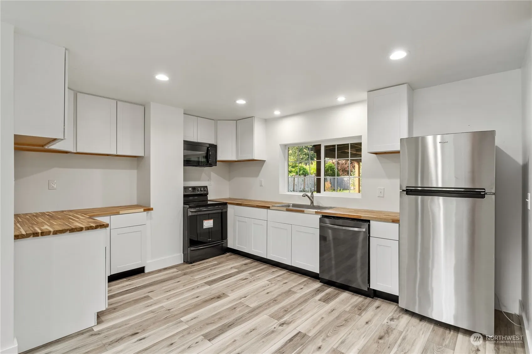 This beautifully renovated home offers 1,600 sq.ft of living space. The open layout connects the main living area w/ a ductless heat pump to a stylish kitchen ft. butcher block countertops and brand-new cabinets and appliances. At the back of the home, you’ll find 2 cozy bedrooms and a 3/4 bath, while the primary bedroom is situated at the front, with a secondary ductless and close to the Laundry & 1/2 bath. New windows fill the home with natural light, and Modern conveniences include a double-car garage with WIFI openers.Recent updates including new siding, electrical, plumbing, sheetrock & more ensure peace of mind. The backyard offers a patio and a fenced yard on a generous double lot Located in the Bench Drive neighborhood.
