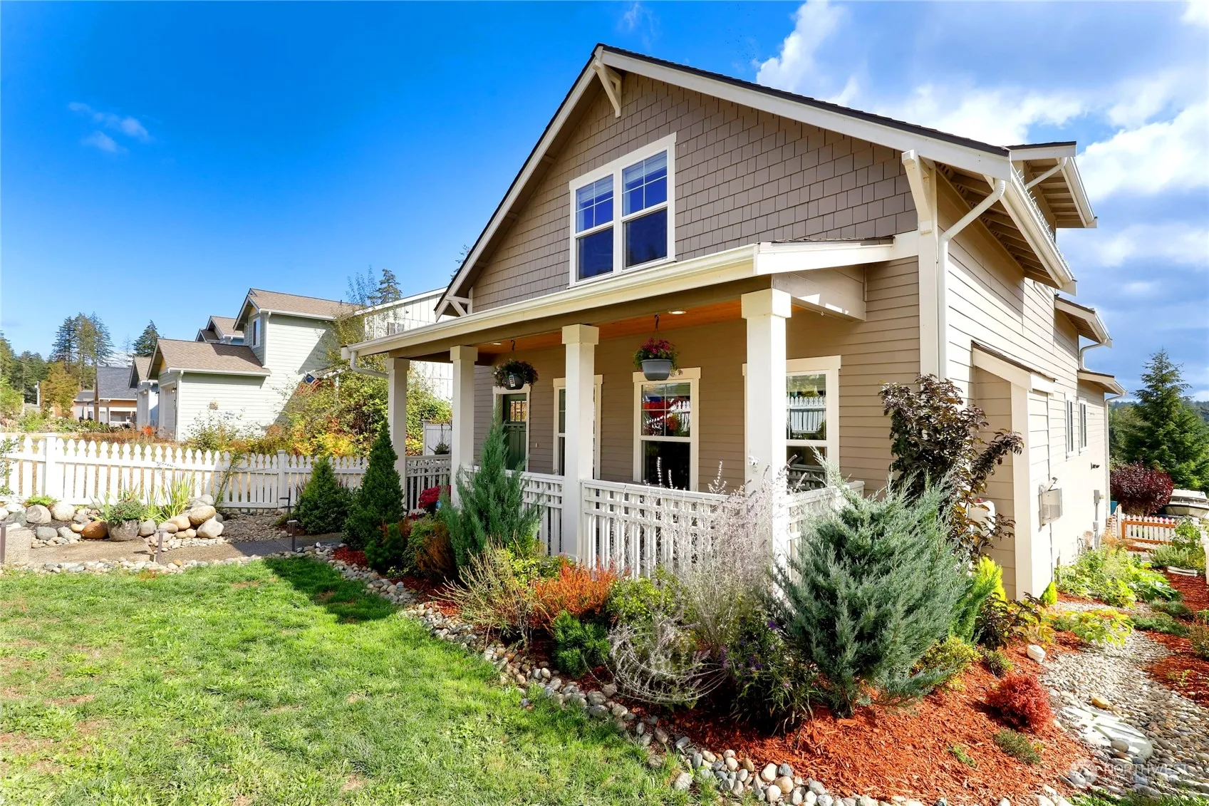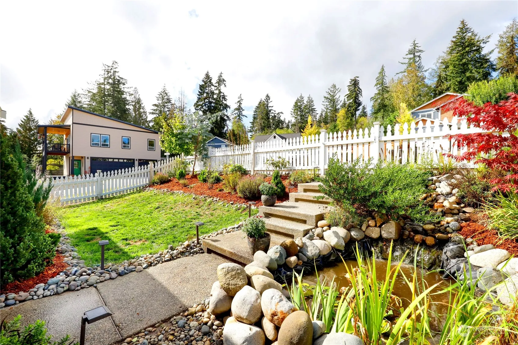 Discover your dream home in Allyn! This charming 3-bedroom, 2.5-bath residence is just blocks from the North Bay waterfront. Enjoy the beauty of a fenced front yard adorned with lush landscaping, a tranquil pond, and covered porch. Enjoy the open living space with a cozy fireplace, seamlessly connecting to the dining area and a modern kitchen featuring an island and stainless-steel appliances. The main level boasts a primary bedroom with a 5-piece en-suite, convenient laundry room, and a 1/2 bath. Upstairs, you’ll find a versatile bonus space, two additional bedrooms, and a full bath. Outside, a deck and fenced yard await, along with an attached 2-car garage. Enjoy nearby dining, golf courses, and just a 1/2 mile to Allyn Waterfront Park.