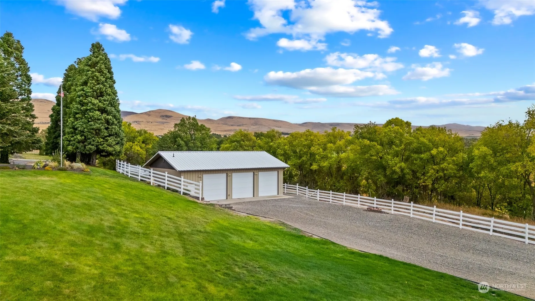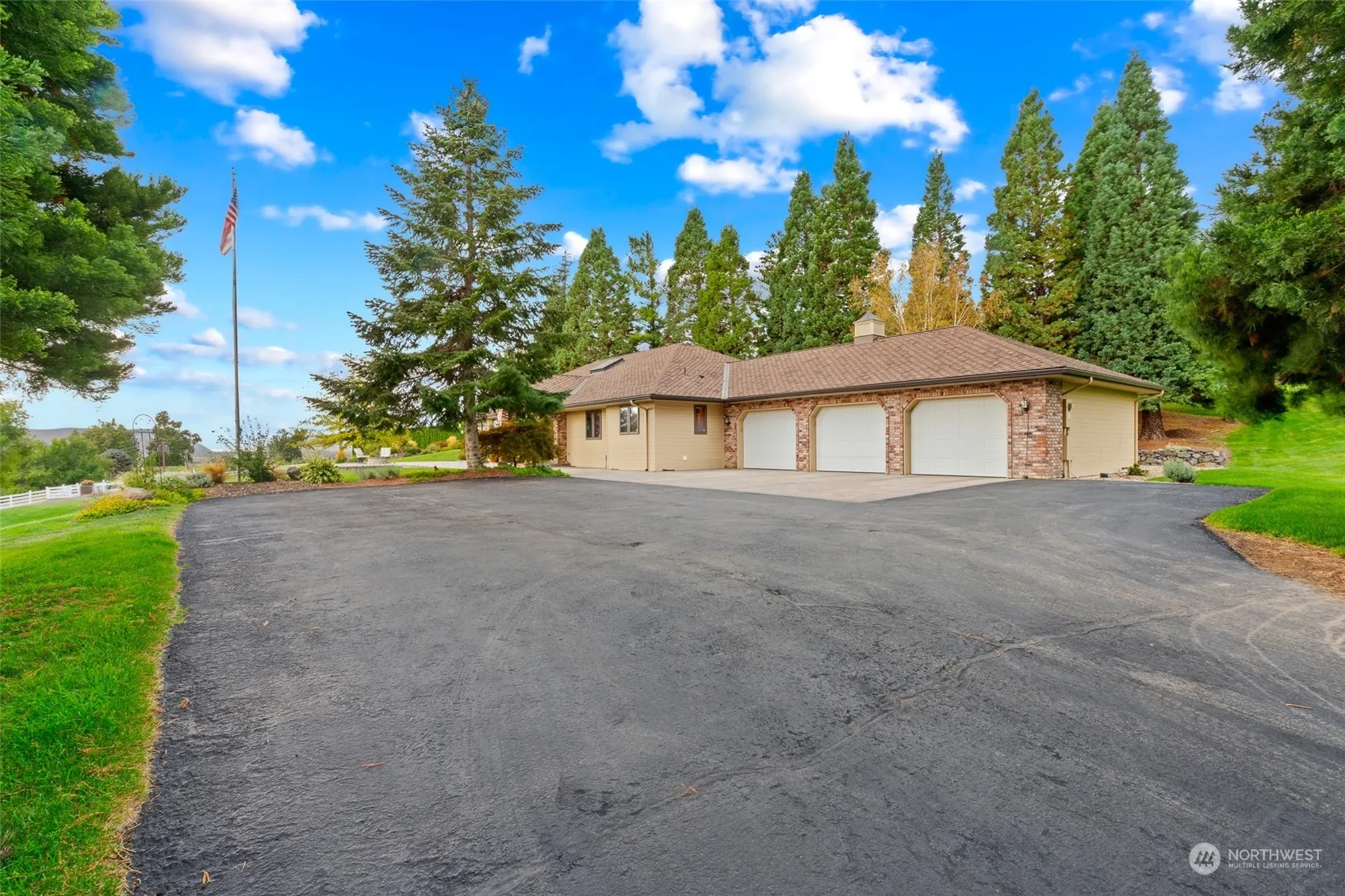 Welcome to your private oasis at the end of a quiet lane. Situated on over two acres of irrigated mature landscaping, this property offers both seclusion and proximity to the country club. Thoughtfully designed 2,332 square foot home features a formal living room, a media room, three bedrooms, and 2.5 bathrooms. The primary suite is a peaceful getaway, complete with a spacious walk-in closet and an en-suite bathroom that includes dual vanities and a walk-in shower. The remaining two bedrooms are spacious and versatile, ideal for guests or a home office . A spacious laundry room connects you to the oversized three-car garage. Additionally, a large 40×30 shop equipped with heating and a bathroom completes this remarkable property.
