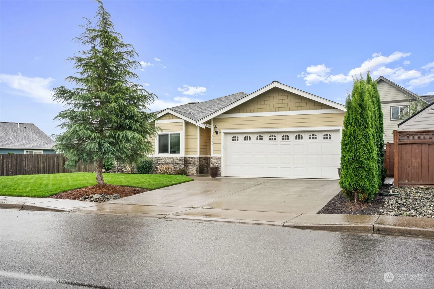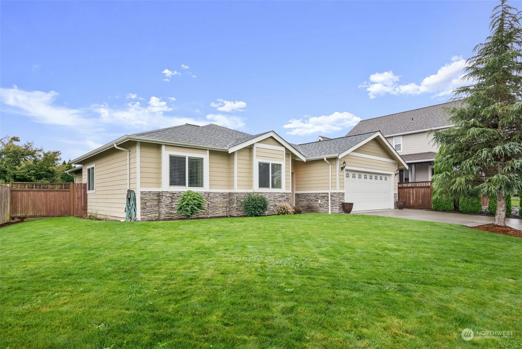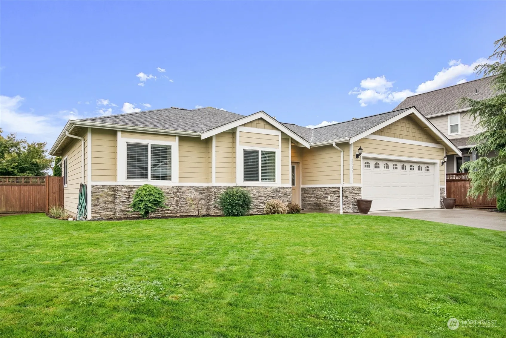 Single level living at its finest! This immaculate home offers 4 spacious bedrooms and 3 full baths. Step inside to find impressive 9′ ceilings and a large great room perfect for entertaining. The kitchen features a large island with seating, stainless steel appliances and granite countertops. Primary bedroom features walk-in shower, soaking bathtub, double vanity, & a large walk-in closet. Oversized garage featuring built-in shelving and ample storage. The fully fenced backyard, with dual access gates on both sides, provides both privacy and convenience. This beautifully designed rambler is what you’ve been looking for. Schedule your visit today and experience it for yourself!