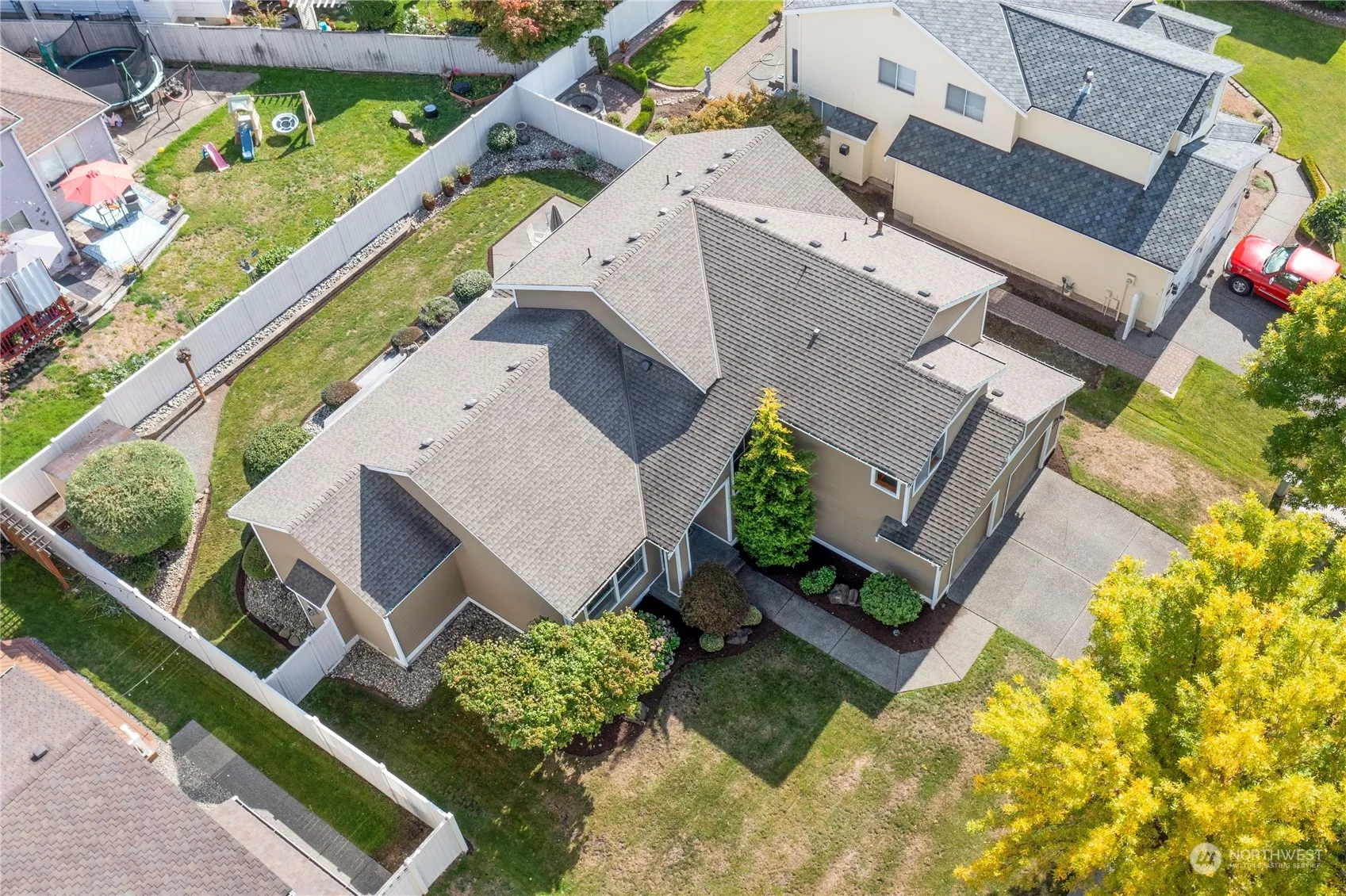 This beautifully maintained 2640 SF home w/ 4 beds & 2.5 baths sits on a quiet dead end street. Inside, find the formal living room w/ gas fireplace, office/den (possible 5th bedroom), dining room & family room w/2nd fireplace. Kitchen features a center island, pantry & breakfast nook leading to the backyard. Don’t miss the recently updated laundry room & 1/2 bath! The primary bedroom has a large 5-piece ensuite w/ mountain views & walk-in closet. Newer carpet, fresh paint & window treatments throughout. Stay cool in the summer w/ AC! Outside, enjoy a 2-car garage, fully fenced backyard w/ easy-care landscaping, gardening shed & expansive deck+concrete patio. Walking distance to downtown Enumclaw, shopping & schools!