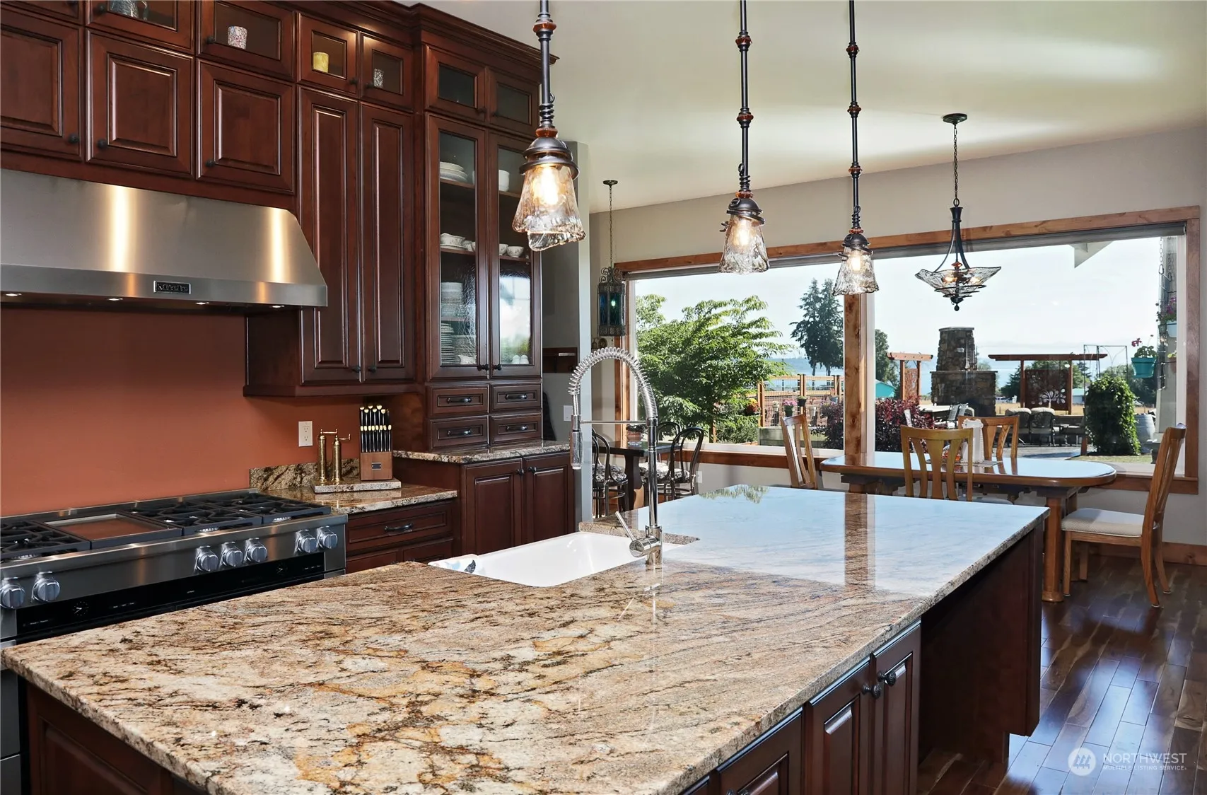 Welcome to Black Walnut Terrace! This exquisite estate property is an entertainer’s delight. Envision enjoying the patio fireplace while grilling on the BBQ overlooking the sound & Cascade Mountains. The main house boasts a chef’s kitchen with high-end appliances & a sumptuous primary suite with custom closets & an elegant bathroom. Flexible 3rd bdrm or den. Charming guest house sits atop a spacious garage/shop. The RV/boat garage will hold all the toys! The entire 6± acres is fenced, with an abundant 22 tree orchard, raised garden beds & fenced pastures. A space for an RV with hook-up and an entertaining pergola. Attention to detail is what sets this property apart. Being here gives you the feeling like you never need to go anywhere else!